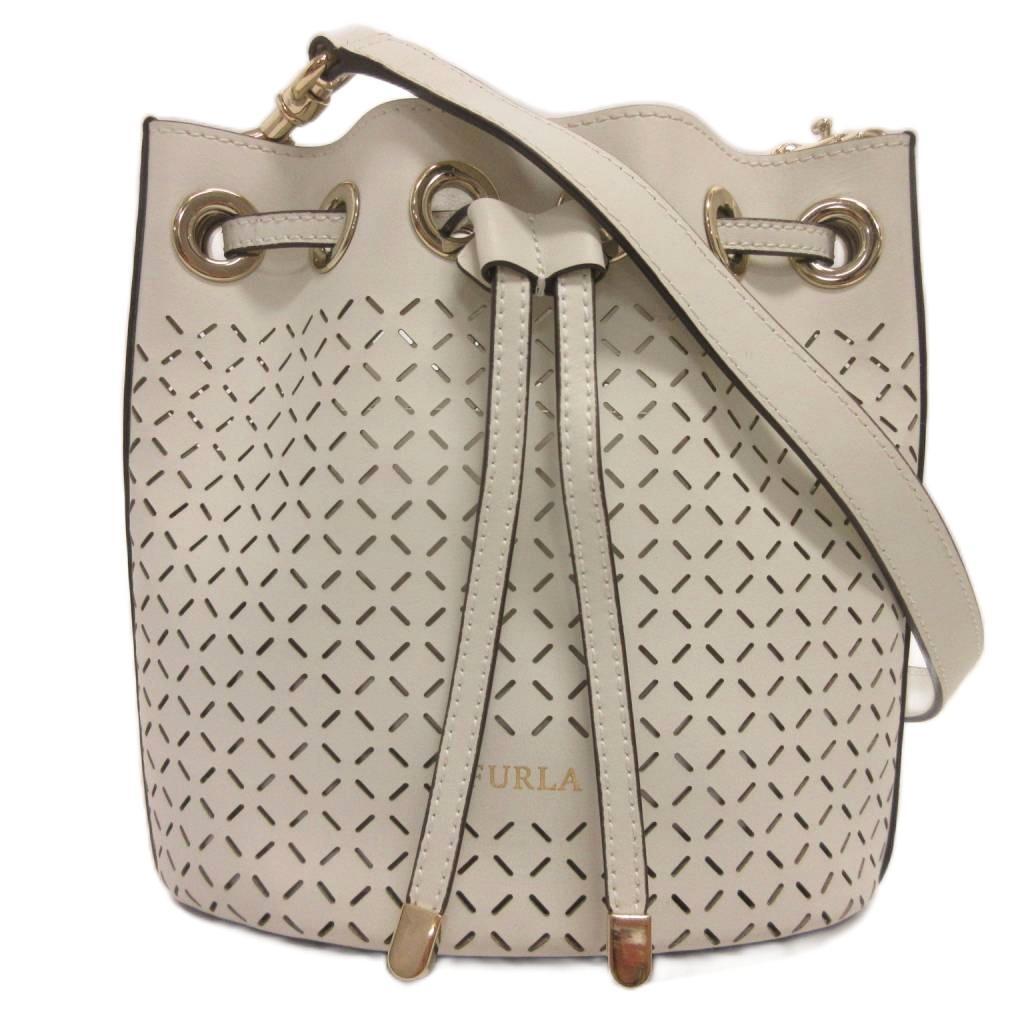 フルラ FURLA 巾着 ショルダーバッグ パンチング レザー 白 ホワイト系 レディース