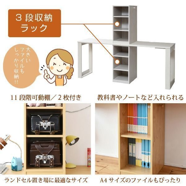 | 兄弟・親子で並んで使えるコンパクトでシンプルなツインデスクです。 ラックの位置が変えられ、 お部屋に合わせて2つのデスクをくっつなけたり離したりと様々なコーディネートが楽しめます。 |