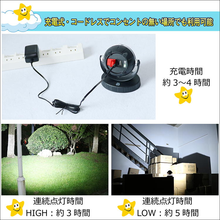 | 点灯時間 | 約3-5時間 | 充電時間 | 約3-4時間 |