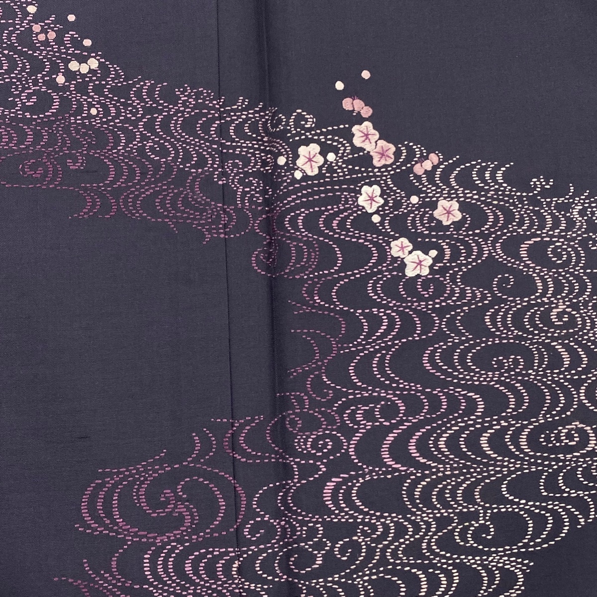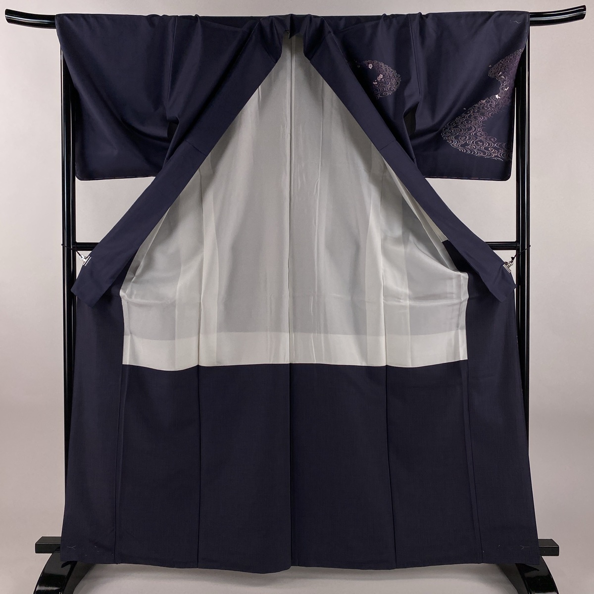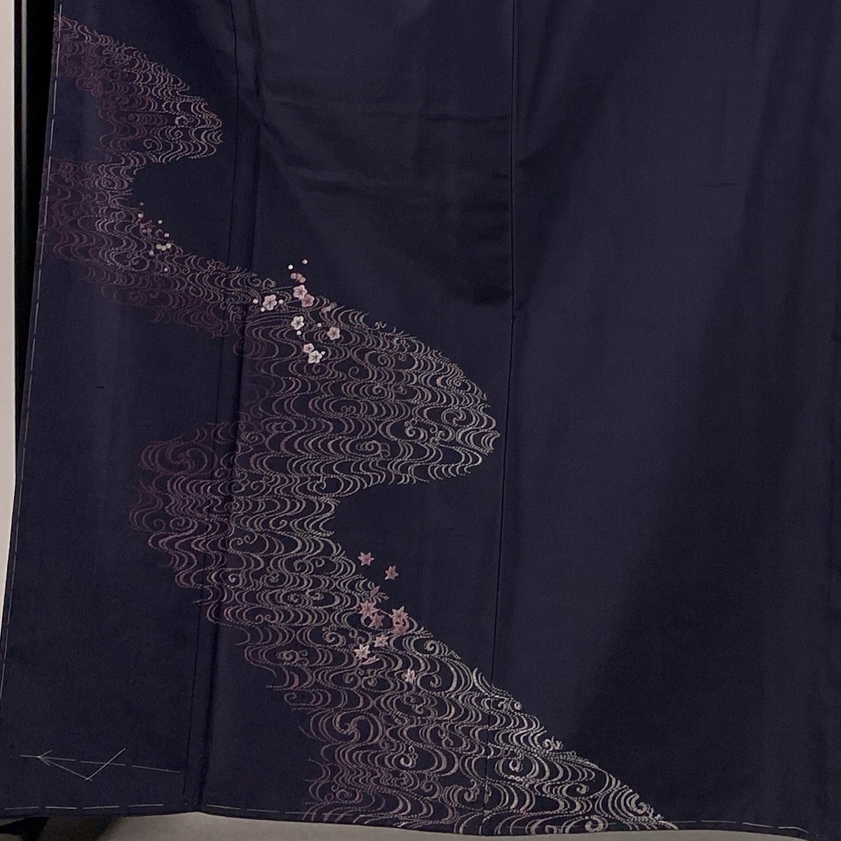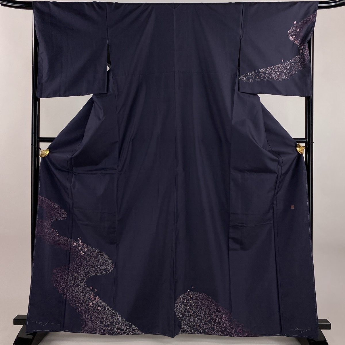| 付下げ 名品 落款 紬地 梅 観世水 刺繍 紺色 袷 身丈165 裄丈68 L 正絹 【中古】 |
