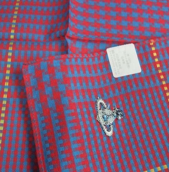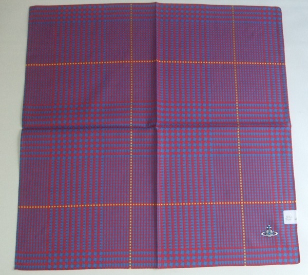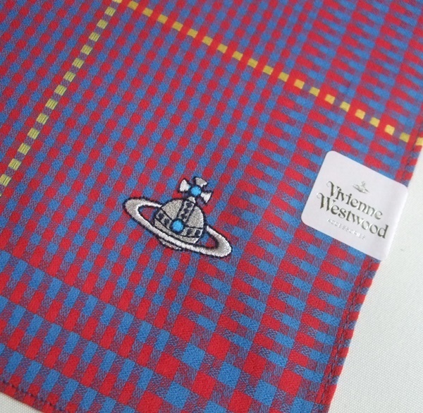 Vivienne Westwood ヴィヴィアン・ウエストウッド ハンカチ 未使用品 オーバーチェック柄 青 X 赤 オーブ刺繍 百貨店