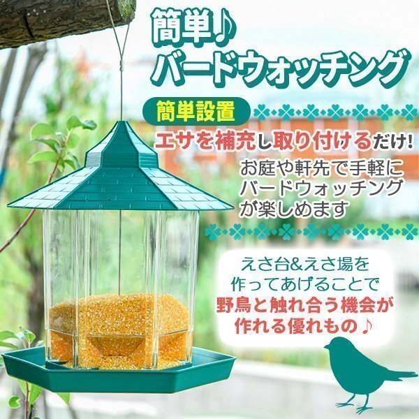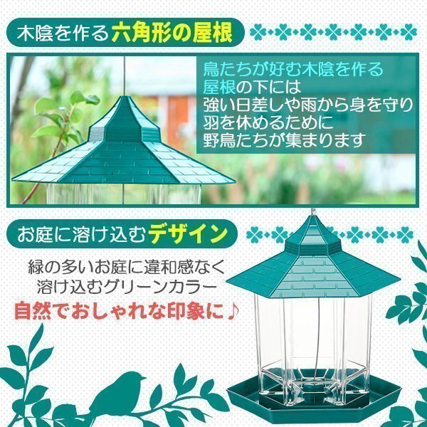 バードフィーダー バードウォッチング 野鳥の餌台 鳥小屋 鳥かご 庭 ガーデン おしゃれ 野鳥 給餌器 餌台 餌場 えさ台 吊下げ グリーン