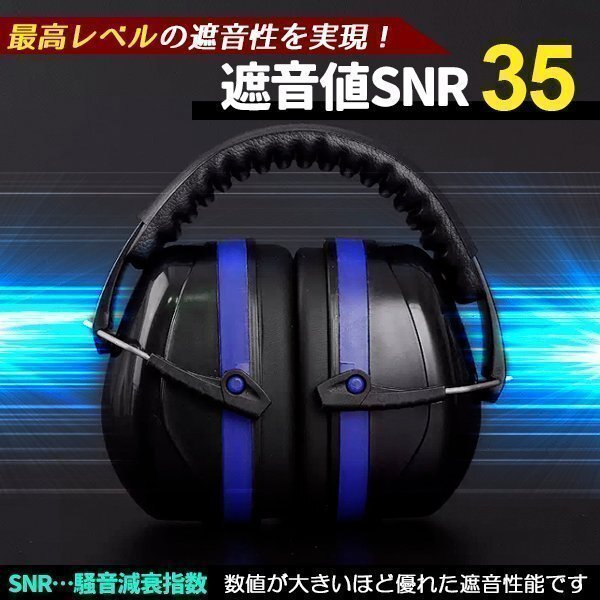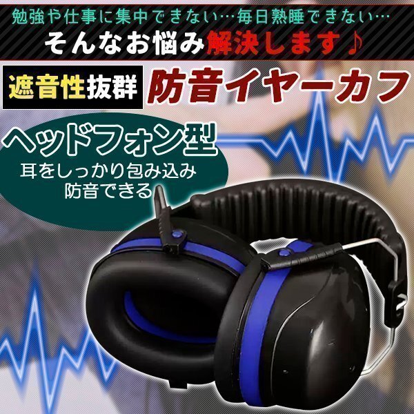 イヤーマフ 防音 遮音 耳当て ヘッドホン型 防音 保護 作業 仕事 集中 勉強 読書 睡眠 安眠 旅行 騒音対策 ノイズキャンセル 軽量 ブルー