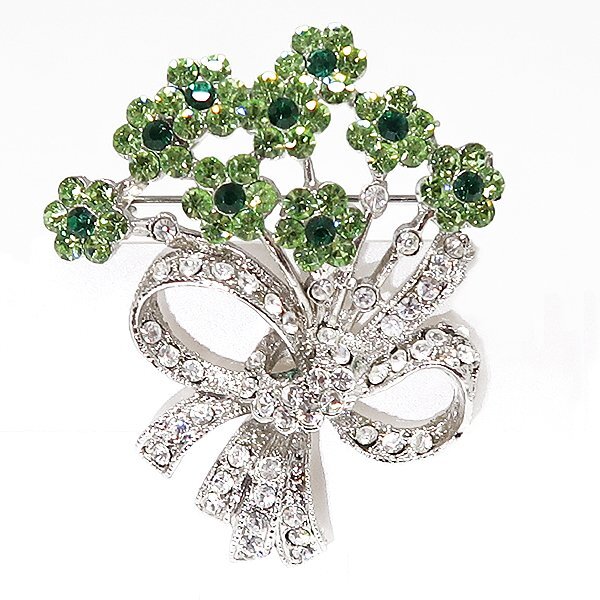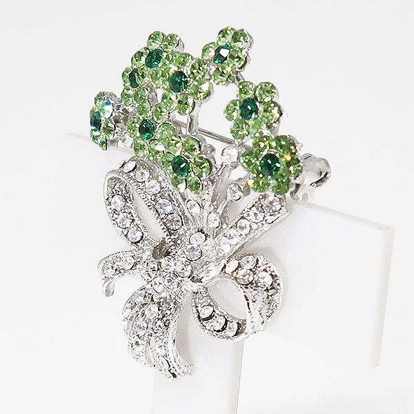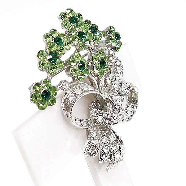 商品名 グリーン フラワー ブーケ ラインストーン ブローチ