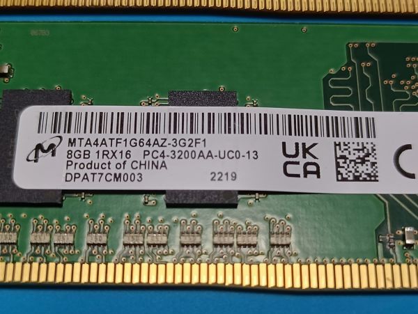 | (BIOSで確認済み)デスクトップPC用【Micron】 8GB 1Rx16 DDR4 PC4-3200AA 8GBx2枚 計16GB | ||||