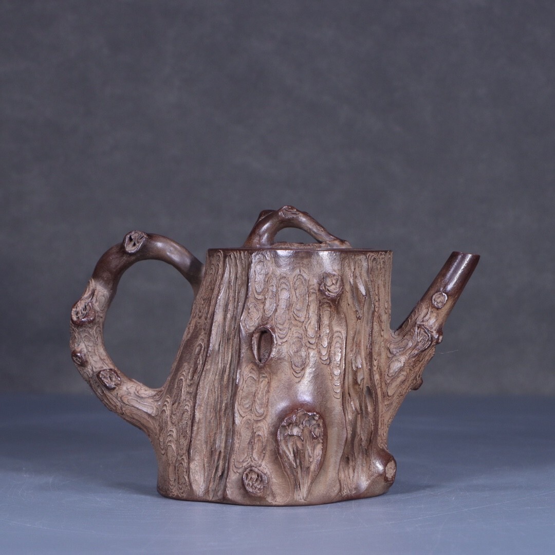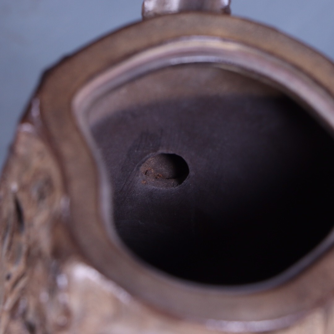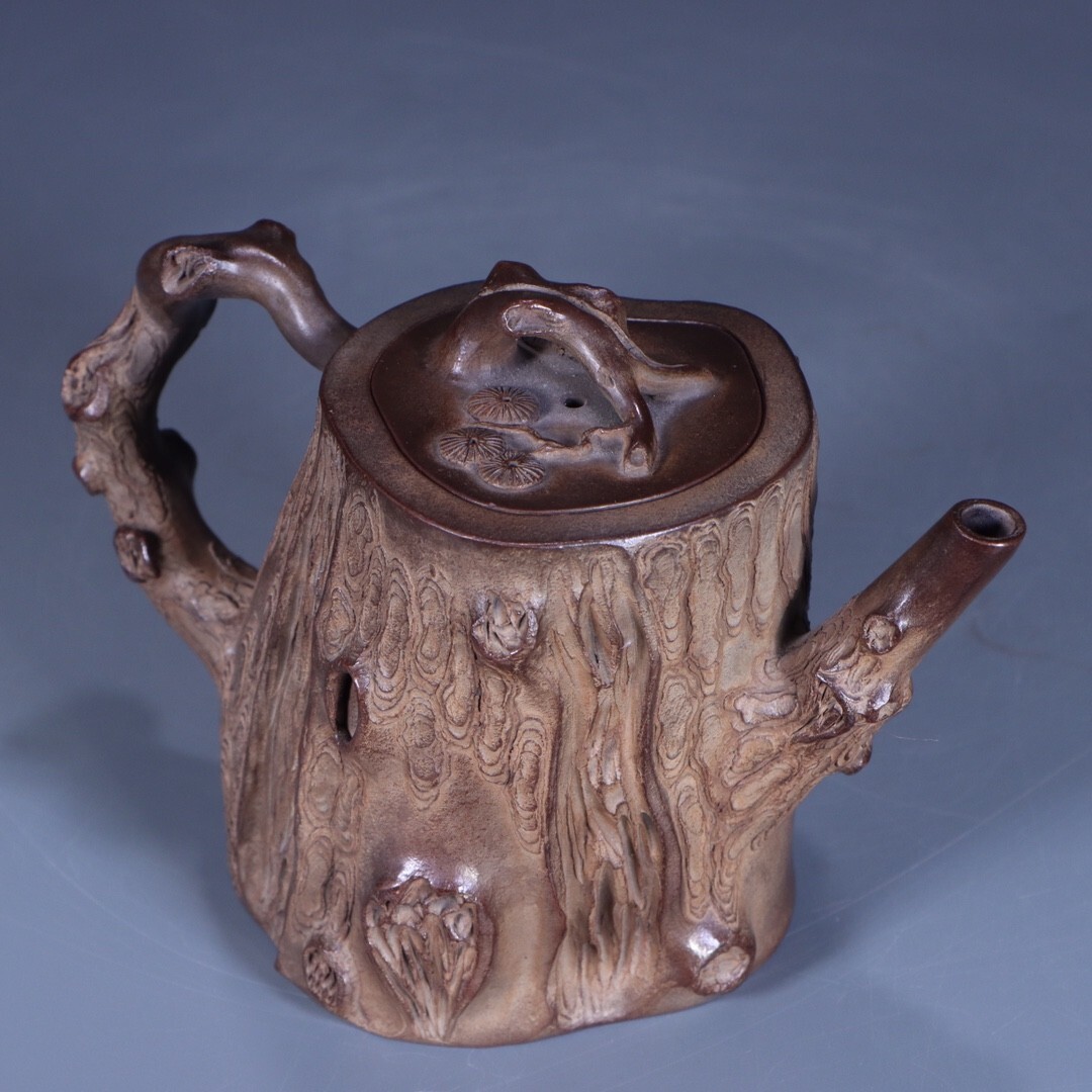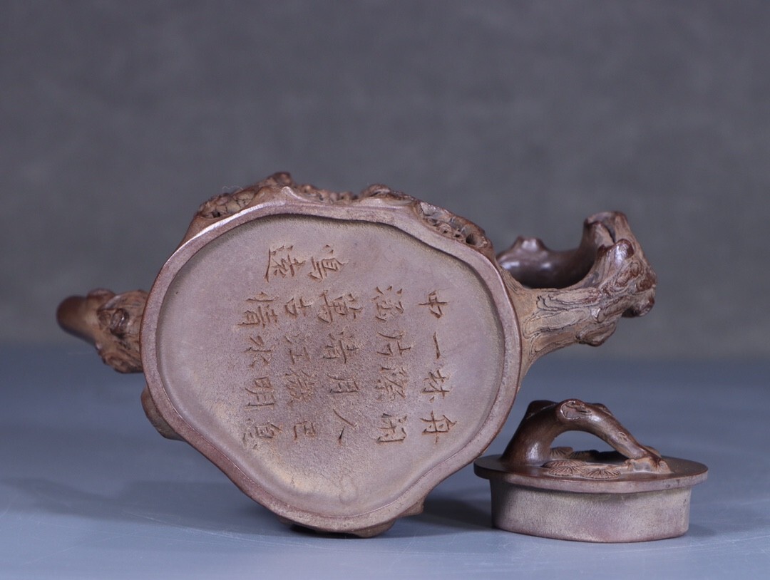 「紫砂彫 松樹パイル紫砂茶壺 鳴遠銘 清時代」陶磁器 急須 茶道具 古賞物 中国古美術 旧蔵出