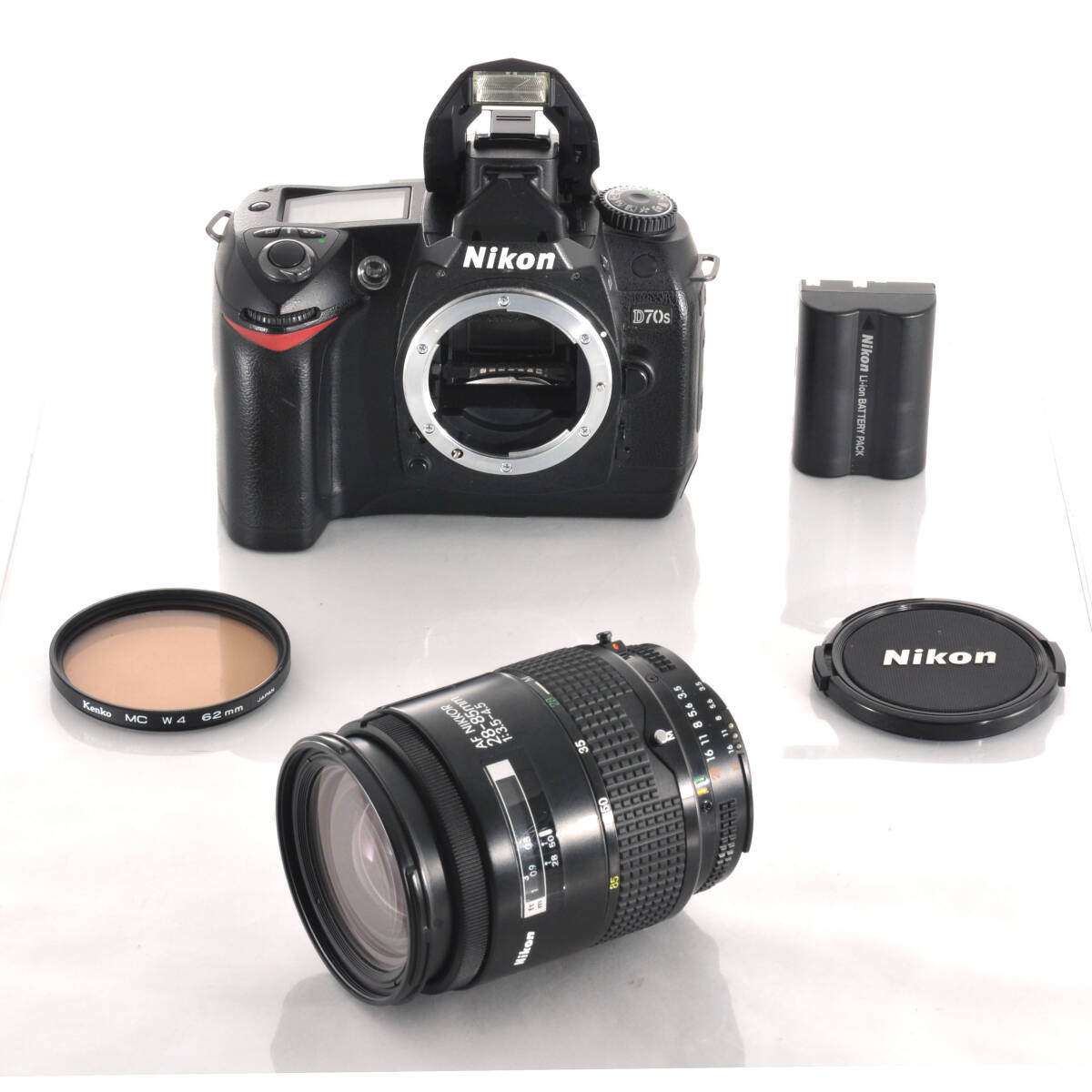 Nikon D70sは、有効610万画素CCDと豊富なマニュアル設定が可能な中級者向けデジタル一眼レフです。AF NIKKOR 28-85mmは実用的な標準ズームで、日常から風景まで幅広く対応します。