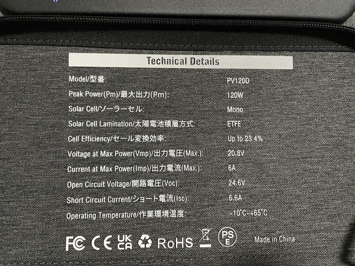 [美品]BLUETTI 120w ソーラーパネルPV120D