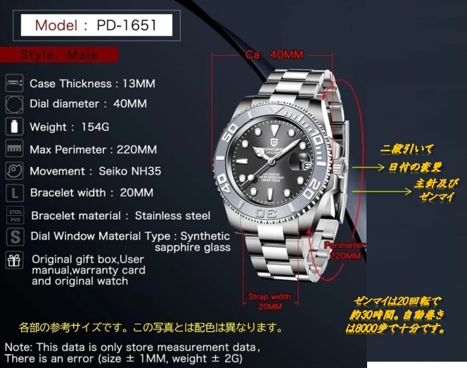■機能:逆転防止ベゼル/日付/自動巻き/手巻き