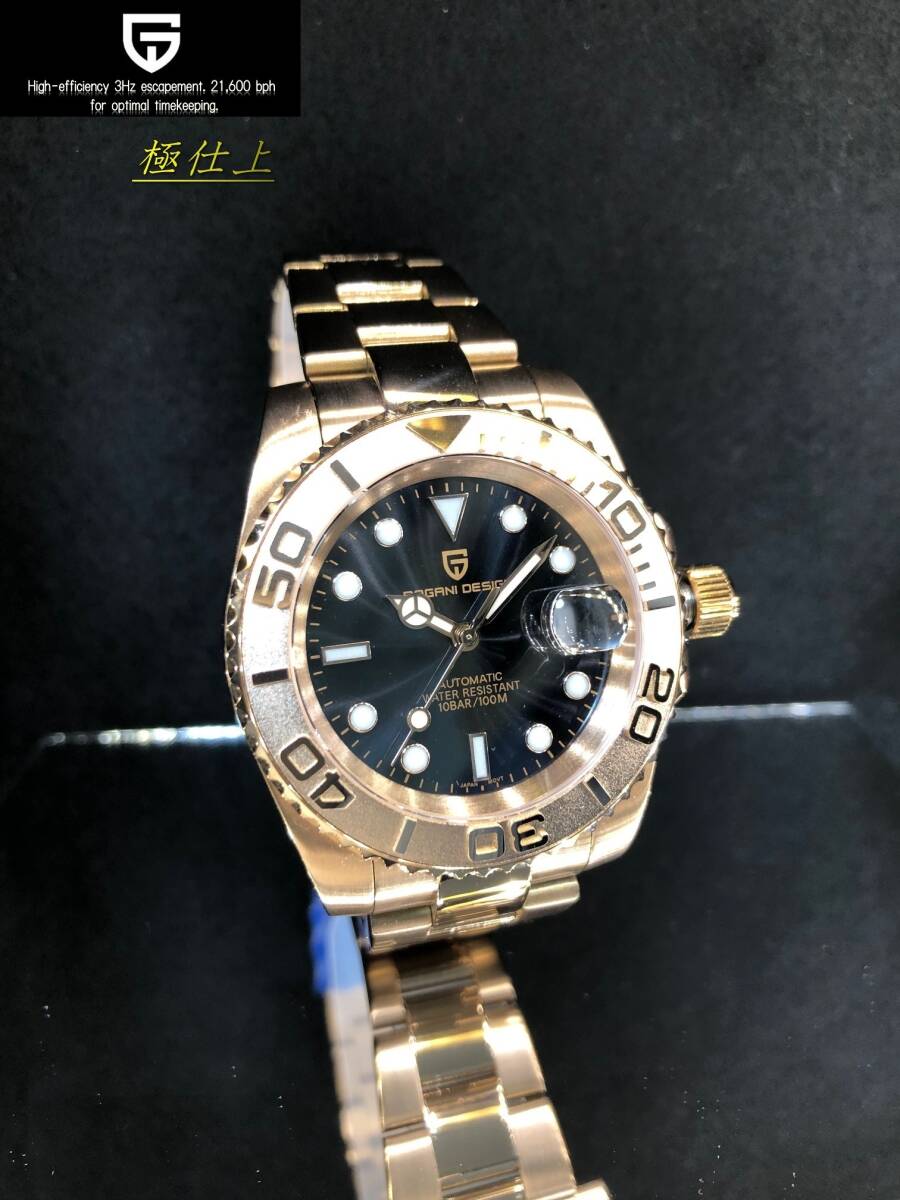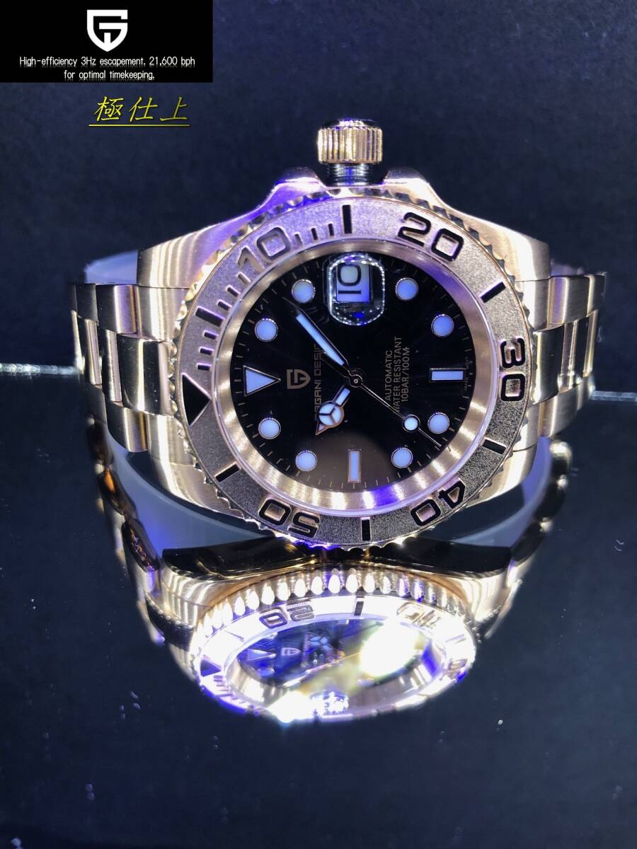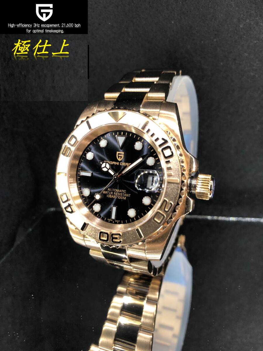 ■フルゴールドのヨットマスターオマージュモデルです。赤みを帯びたローズゴールドは周囲から貴賓にしか映らないでしょう。本家も同色がありますが、見劣りしません。さすが世界中で評価の高いオマージュブランドのPD。極仕上げ品のため高級時計で感じられる「しっとり感」がございます。是非ご堪能下さい。