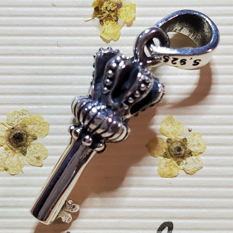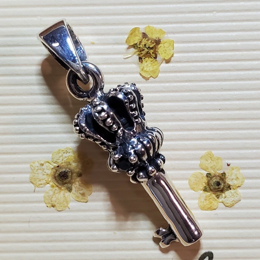 ペンダント ネックレス シルバー925 チャーム 王冠 クラウン 鍵 キー 銀 本物 重量感 メンズ チャーム かっこい n0369