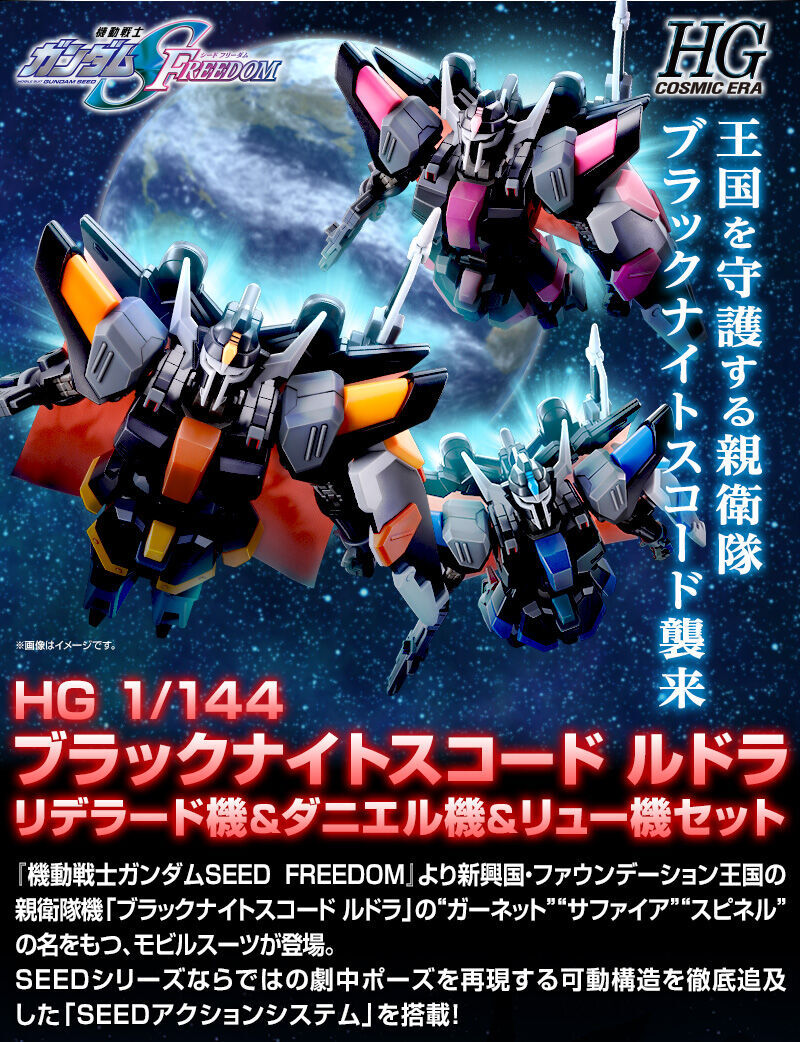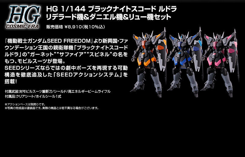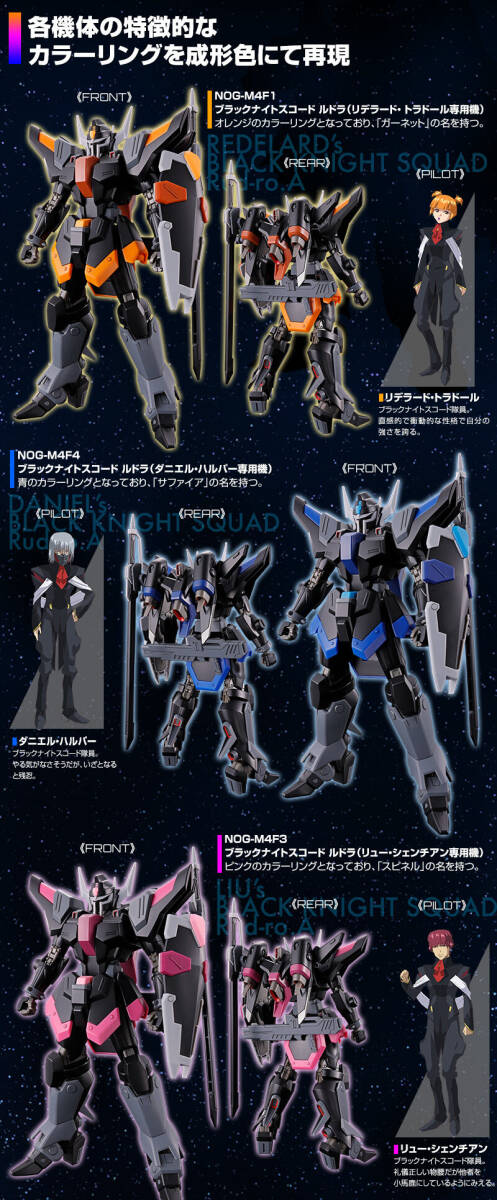 バンダイのガンプラ、「プレミアムバンダイ限定 HG 1/144 ブラックナイトスコードルドラ リデラード機&ダニエル機&リュー機 セット」です。