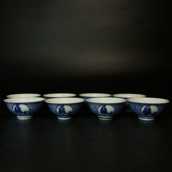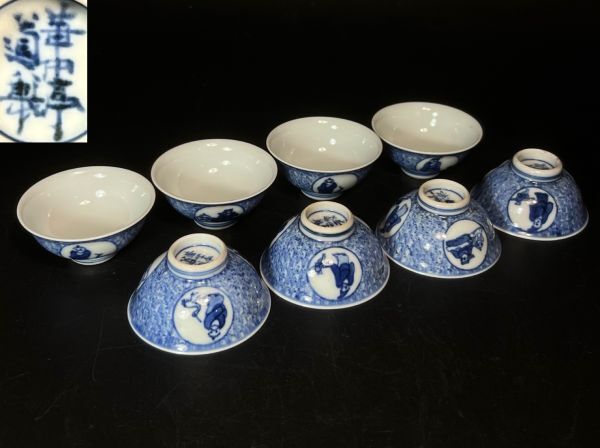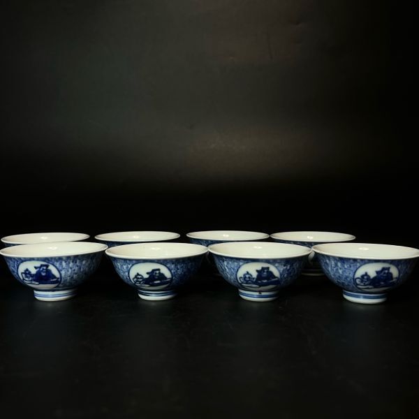 華中亭道八製 青華 煎茶碗 8客 煎茶道具