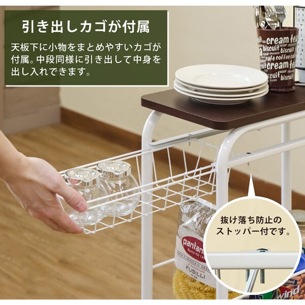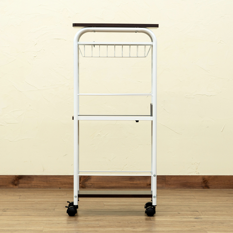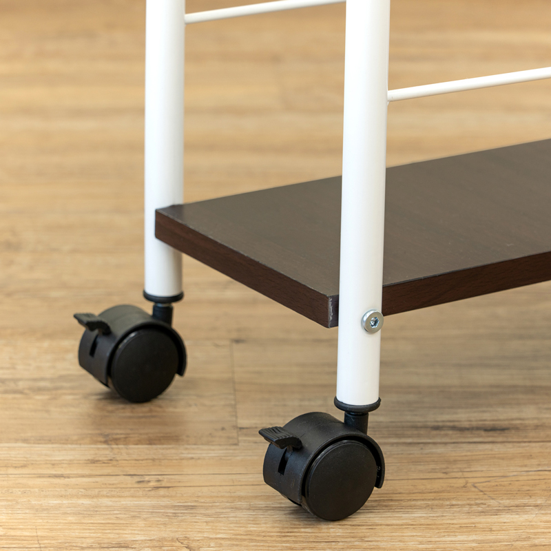 | 材質 | 天板・中板(スライド棚)・地板:合成樹脂化粧繊維板(PVC貼り) フレーム:スチール(エポキシ粉体塗装) キャスター4個付(内2個ストッパー付) |