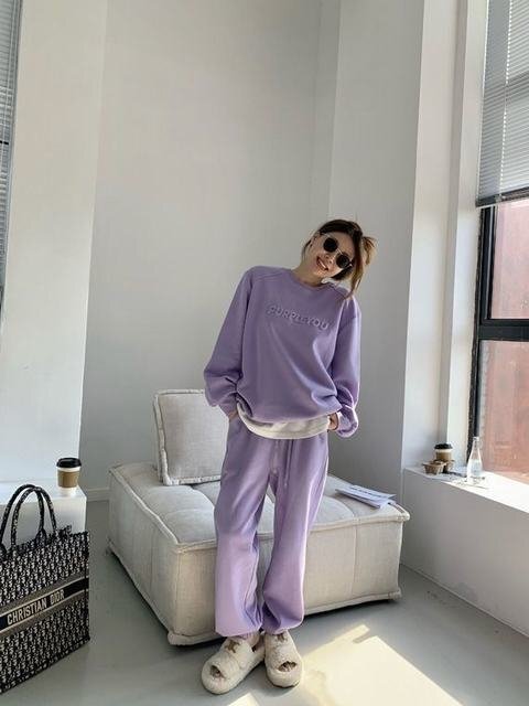 ジャージ 散歩 ロングパンツ セットアップ 上下セット 長袖 運動服 スウェット 大きいサイズ トレーニングスーツ パープル L