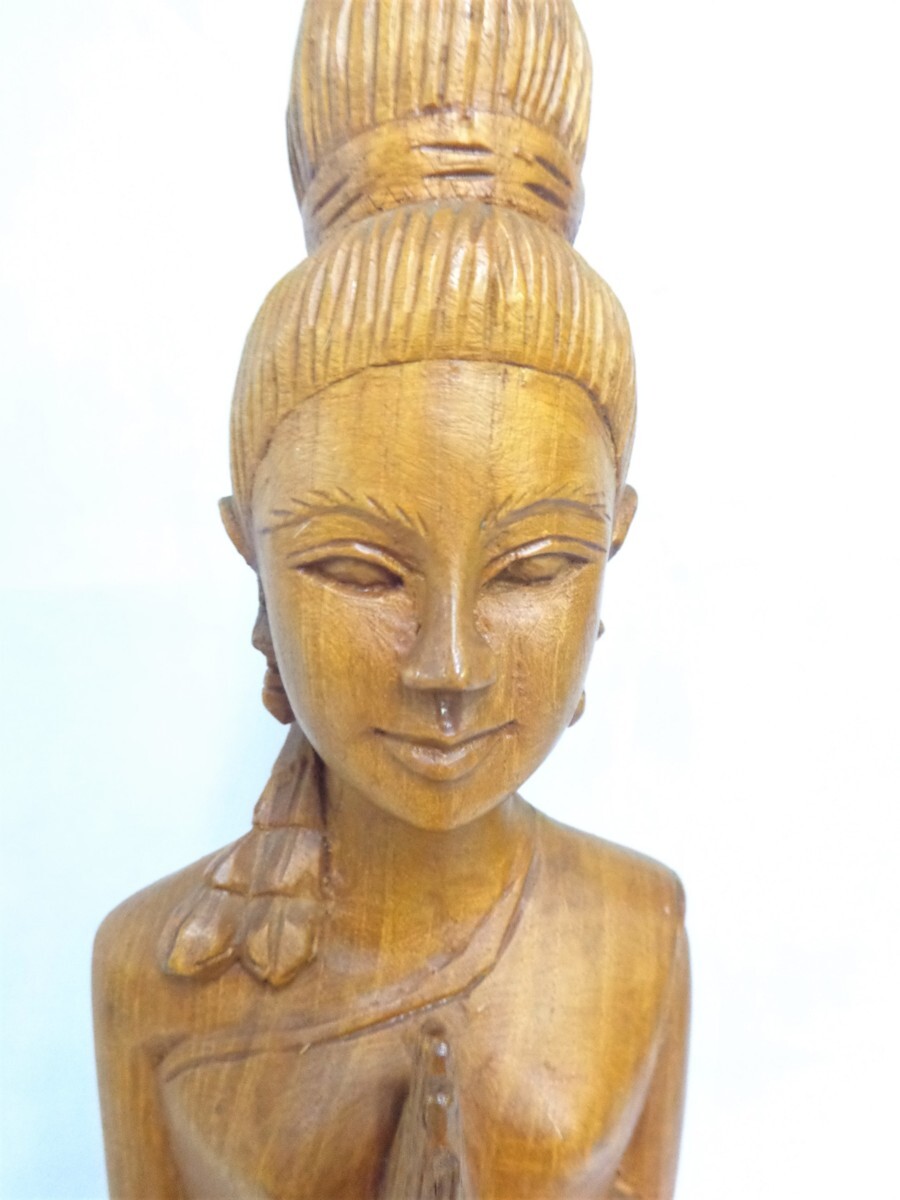 ▽木彫り アジアン女性像 全高51cm 置物 インテリア エスニック 中古▽001245