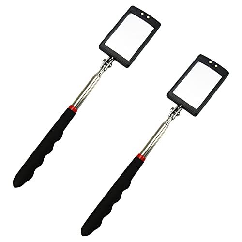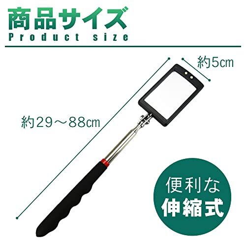 「伸縮式点検鏡 棒付きミラー 点検ミラー 角度調整可能 LEDライト付き 握りやすい 施工 点検 修理 (2個)」▼4570029873672▼(商品説明)調整可能ブラック/-/-