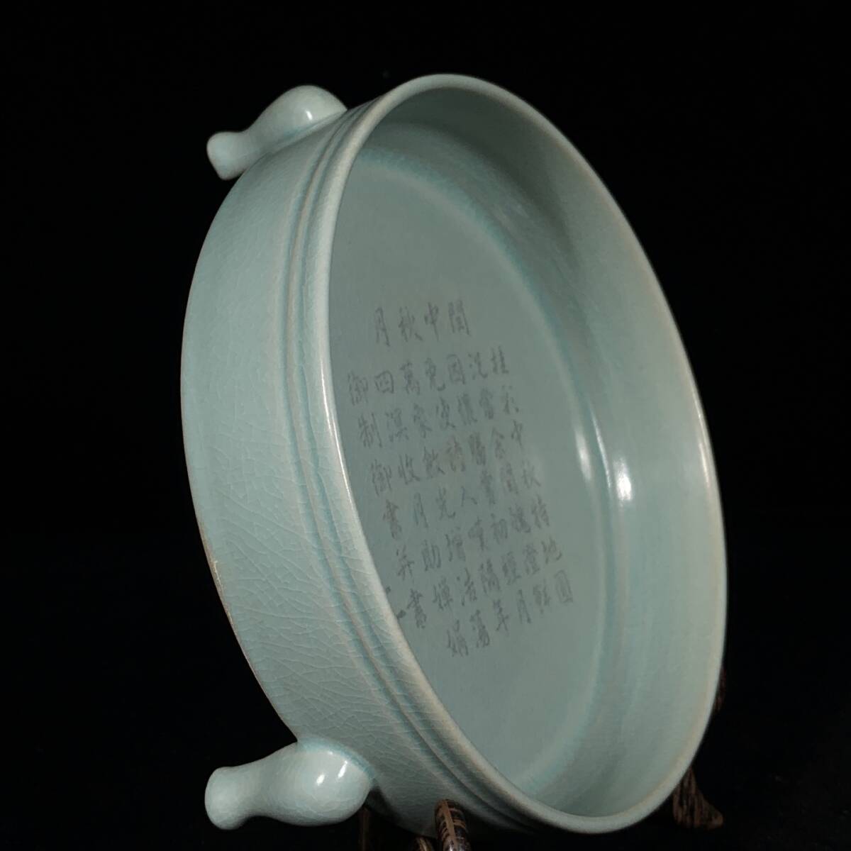 【超珍館蔵】宋 古陶瓷品 汝窯 銘文 三足洗 陶藝 古賞物 古董品 古美術品 時代物 旧家蔵出 稀少珍蔵品