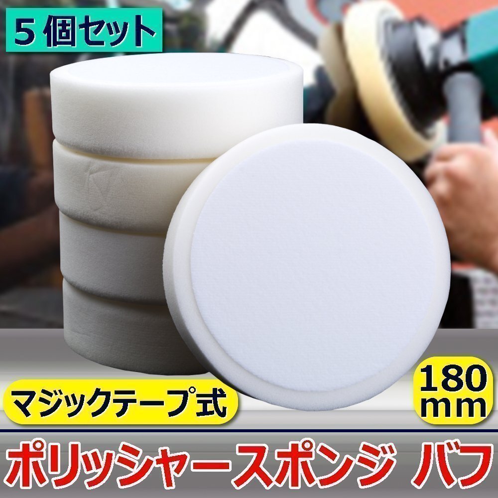 マジックテープ 式 ポリッシャー スポンジ バフ 5 個 1 セット 180 mm 掃除 クリーナ ワックス サンダー エアーツール 洗車 研磨 工具