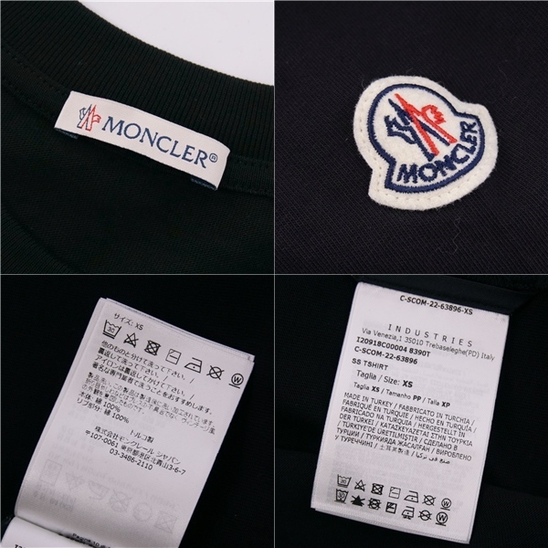 | 美品 モンクレール MONCLER Tシャツ 2022 カットソー ショートスリーブ 半袖 コットン トップス メンズ XS ブラック |