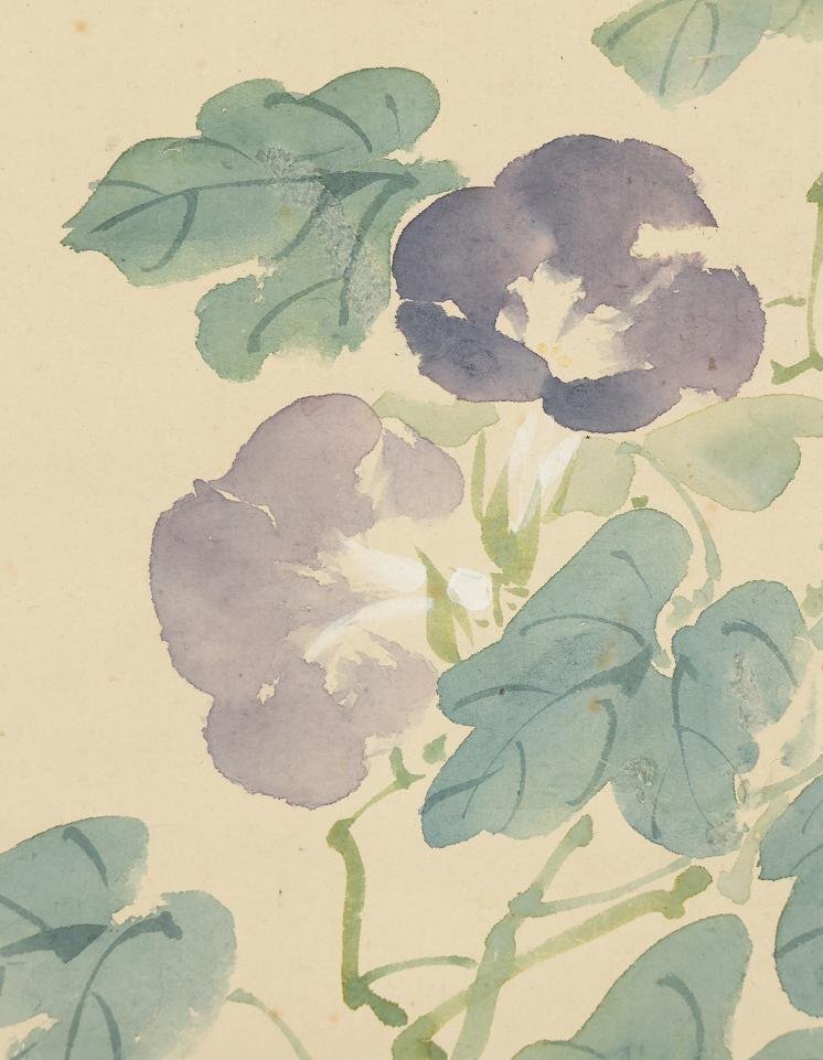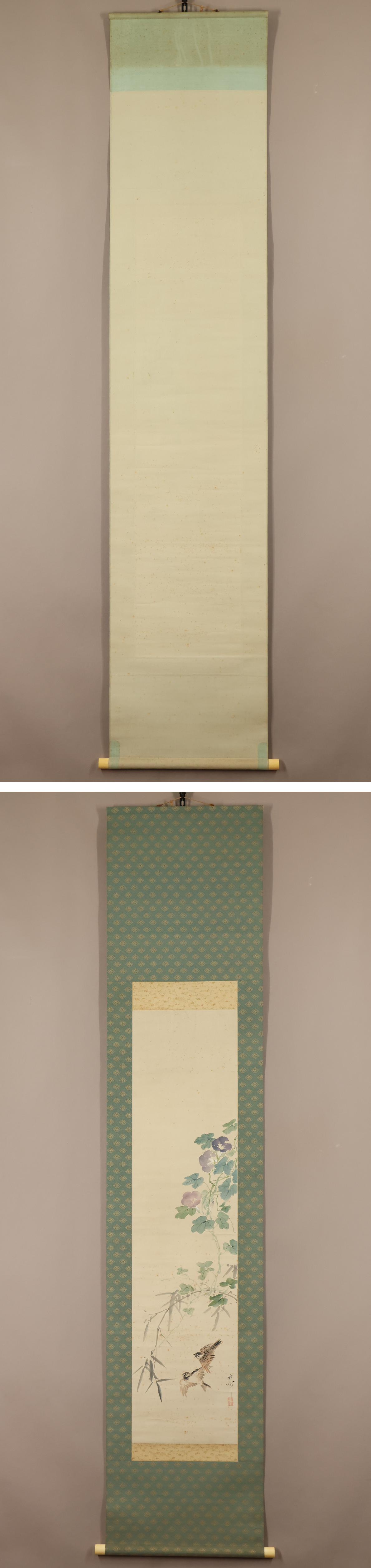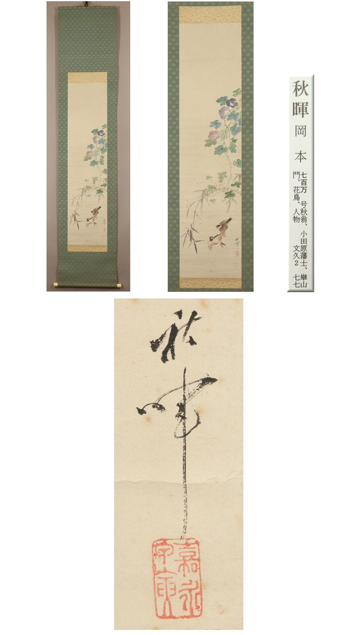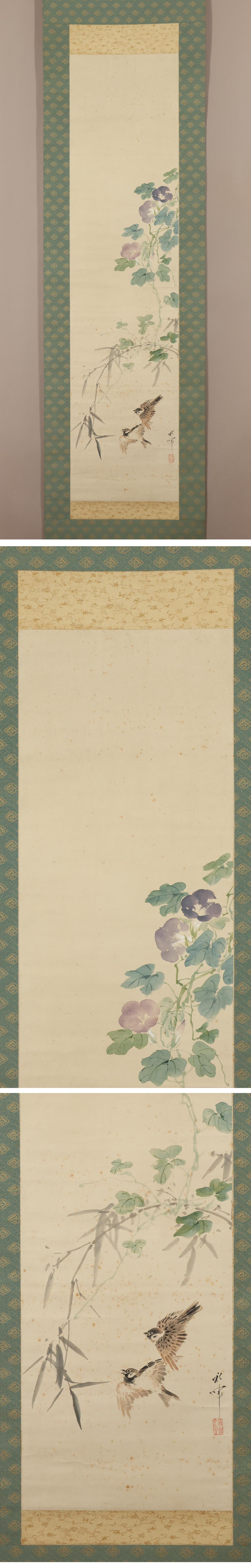 【模写】岡本秋暉◆朝顔雙雀◆二重箱◆日本画◆紙本◆掛軸◆x147