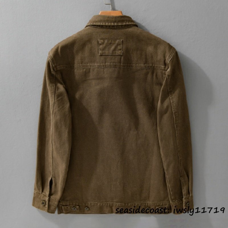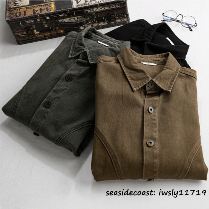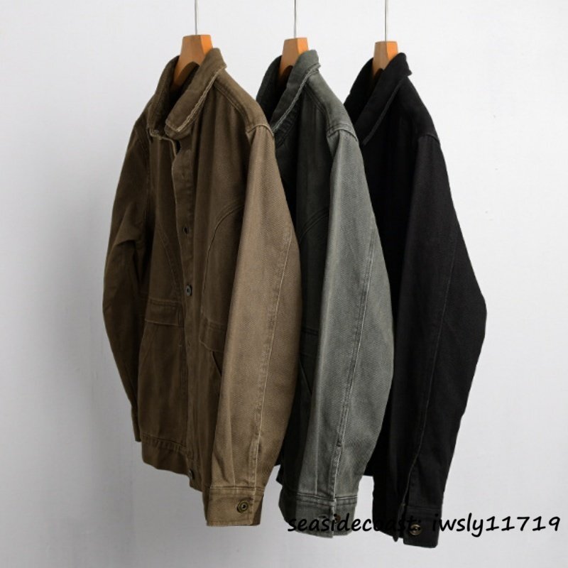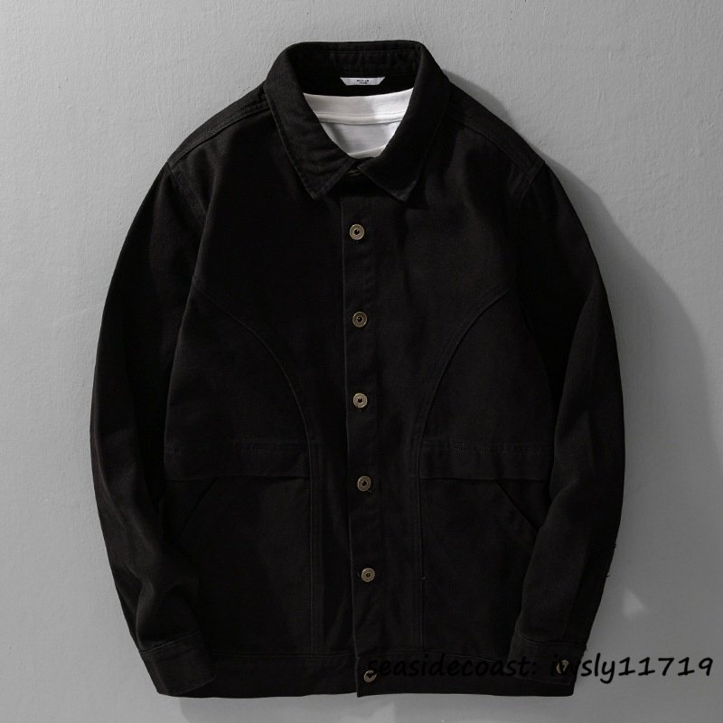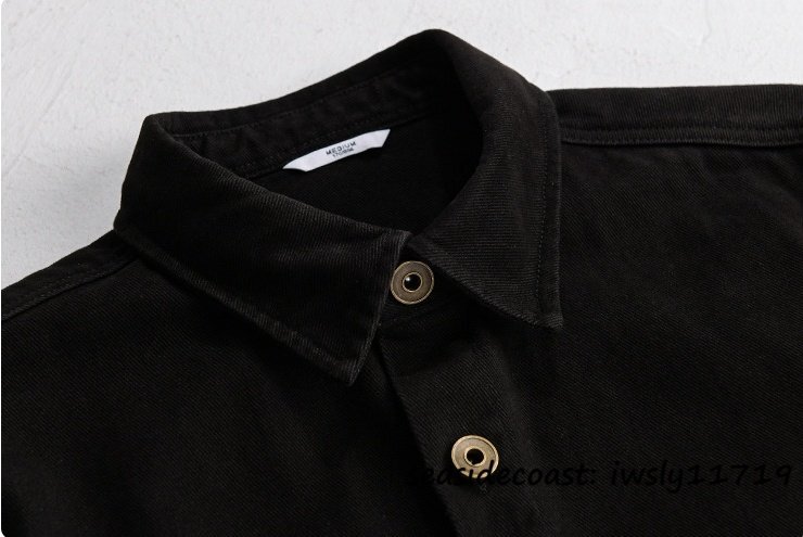 春秋新品*ワークシャツ メンズ 無地 長袖シャツ アメカジ ワークジャケット ミリタリー 古着風 アウター ジャンパー ゆったり ブラック M
