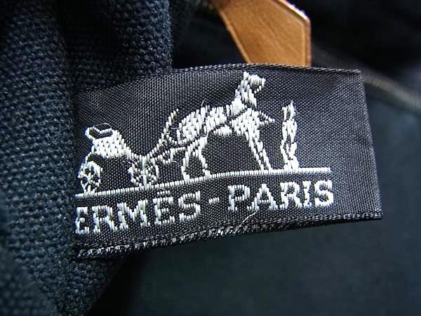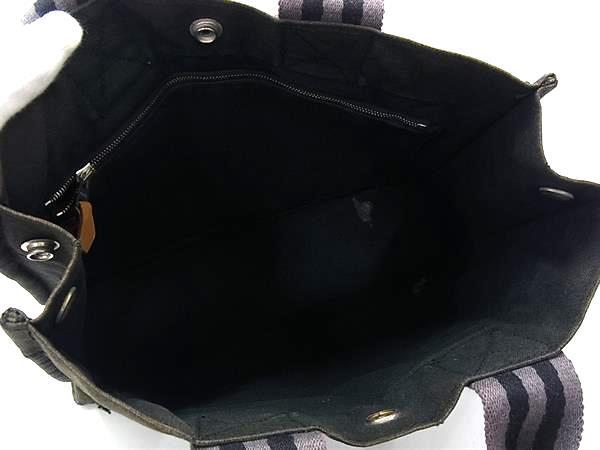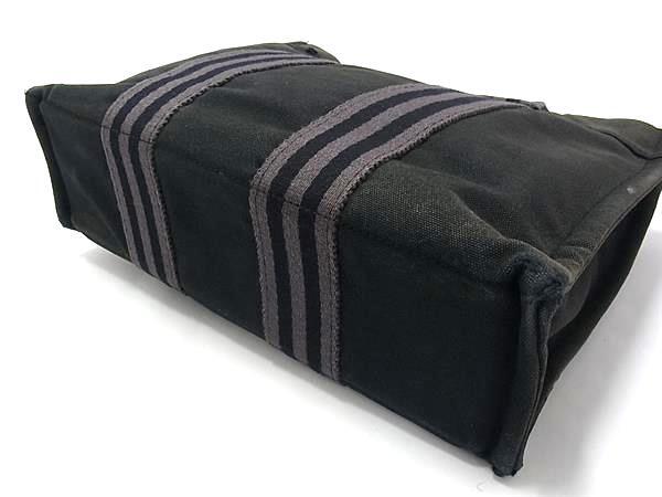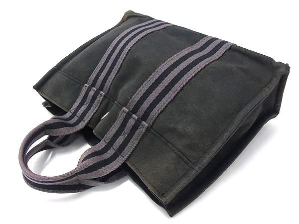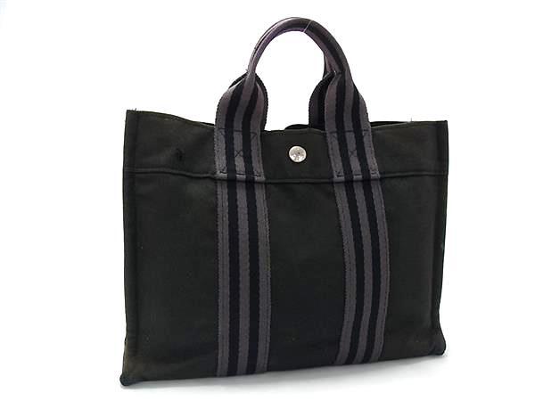 1円 HERMES エルメス フールトゥPM キャンバス シルバー金具 ハンドバッグ トートバッグ メンズ レディース ネイビー系 GB2436