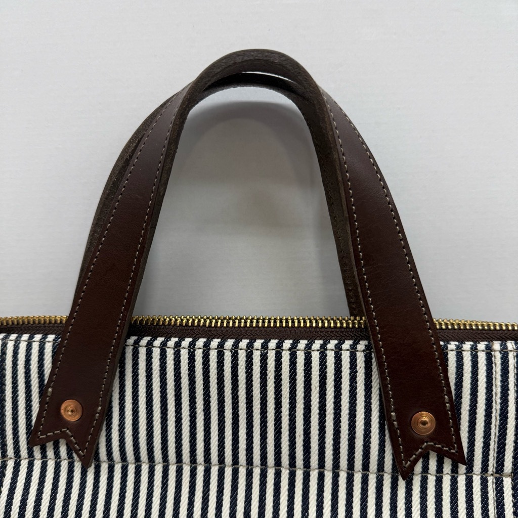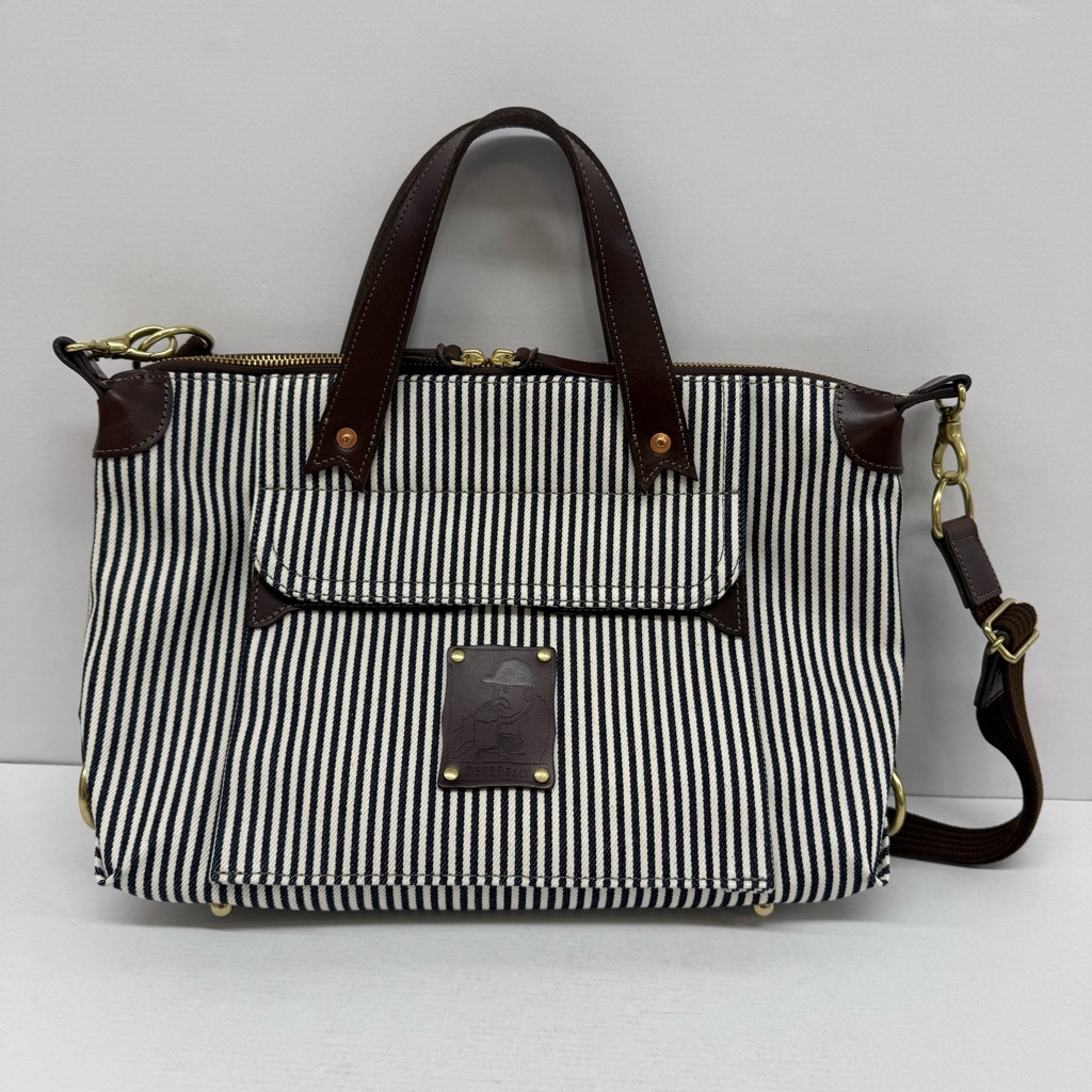 263-BY25) 未使用 BEERBELLY CHELSEA BAG S ヒッコリー チョコ レザー ビアベリー チェルシーバッグ 2way ストライプ ボストン ショルダー