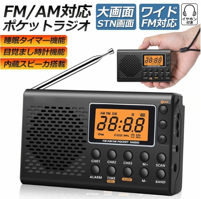 ポケット ラジオ 防災 小型 おしゃれ ポータブルラジオ ポケットラジオ AM/FM ワイドFM 携帯ラジオ 高感度 日本語取説付き(色:黒)