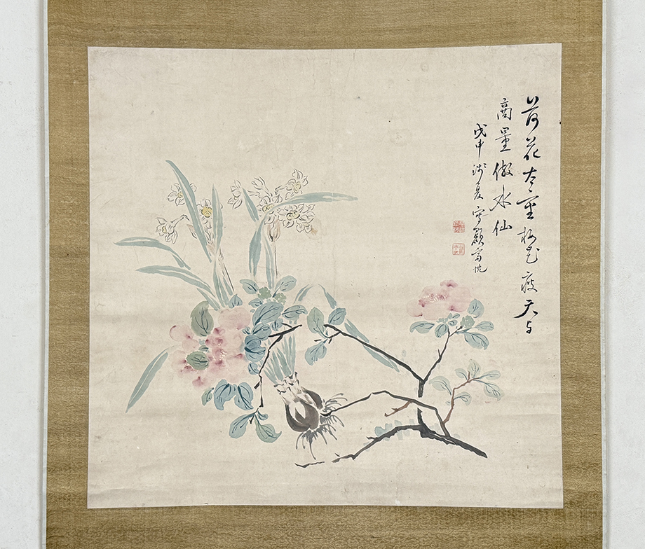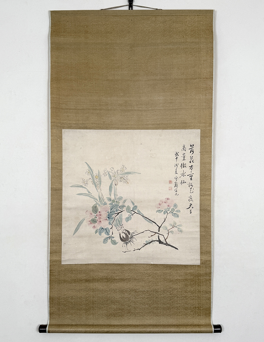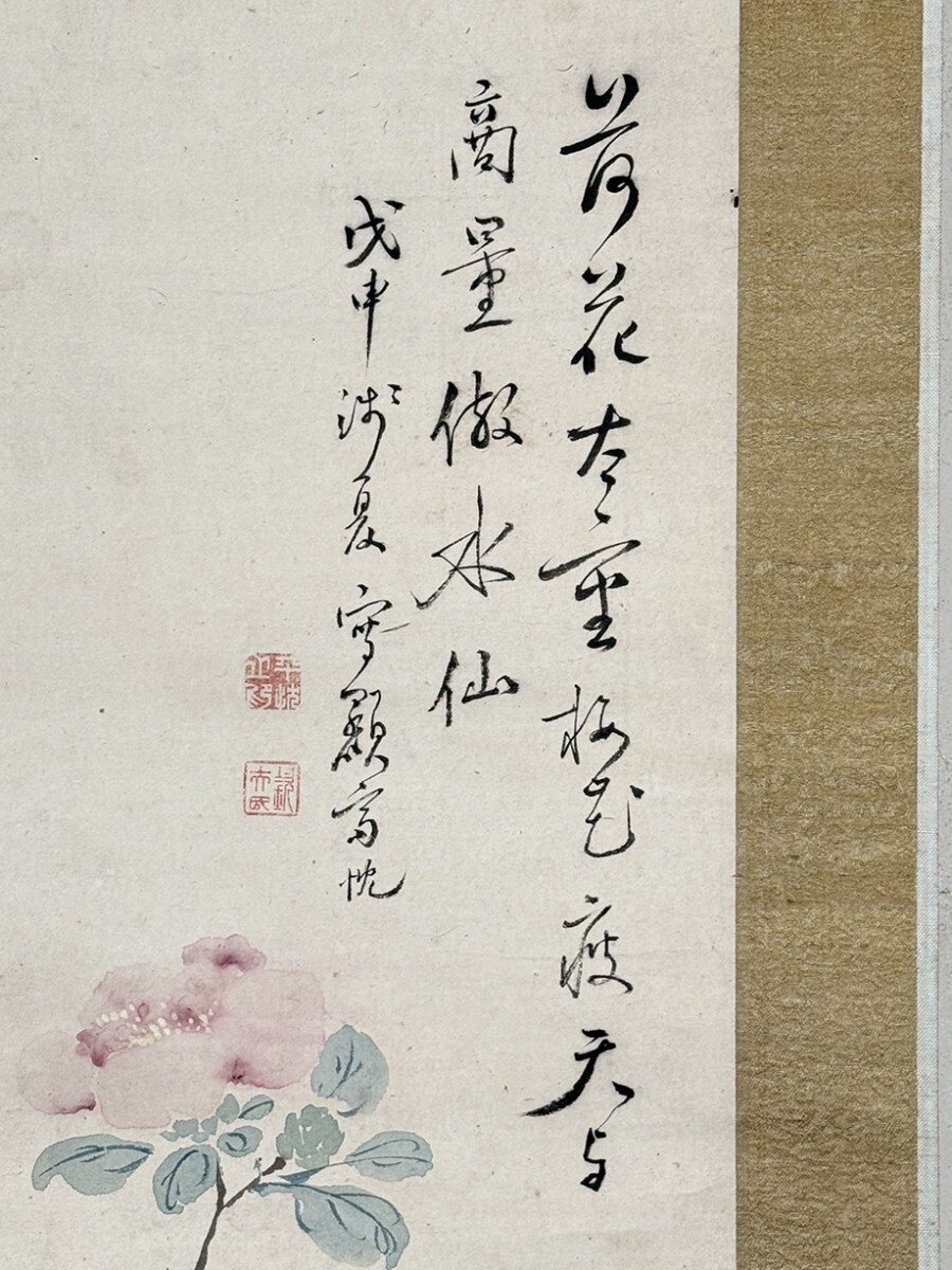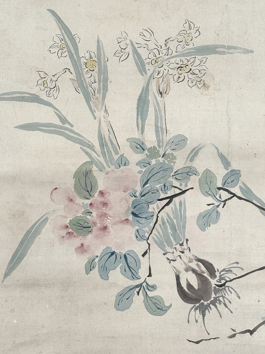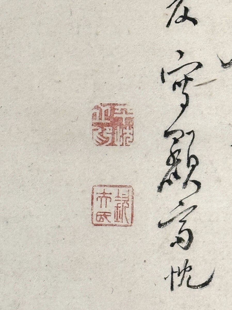 総丈サイズ…横 65.5 × 縦 128 cm 紙本着色 嘉永元年(1848)48歳 状態…少シミ・少オレ・微少傷ミ 【印刷ではありません】 【真作】 平井顕斎 江戸後期の南画家。遠江生。名は忱。字は欽夫。通称を治六。別号に三谷山樵。幼少から画を好んではじめ掛川の村松笠斎に学び、さらに江戸に出て谷文晁に学んだ。各地を遊歴したのち福田半香の紹介により渡辺崋山に入門する。蛮社の獄に際しては椿椿山、半香らと師崋山の救済活動に奔走した。山水画を得意とした。安政2年(1855)歿、55歳。 |