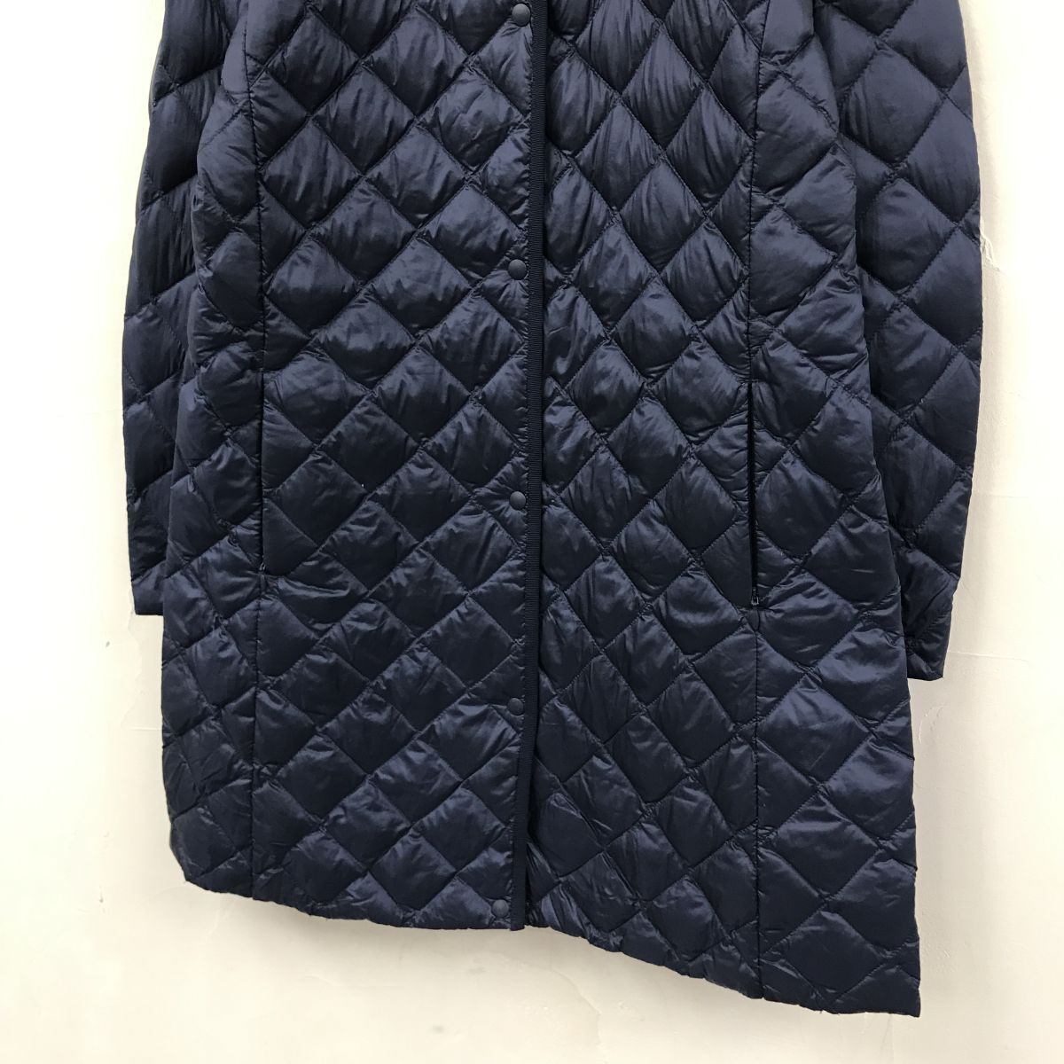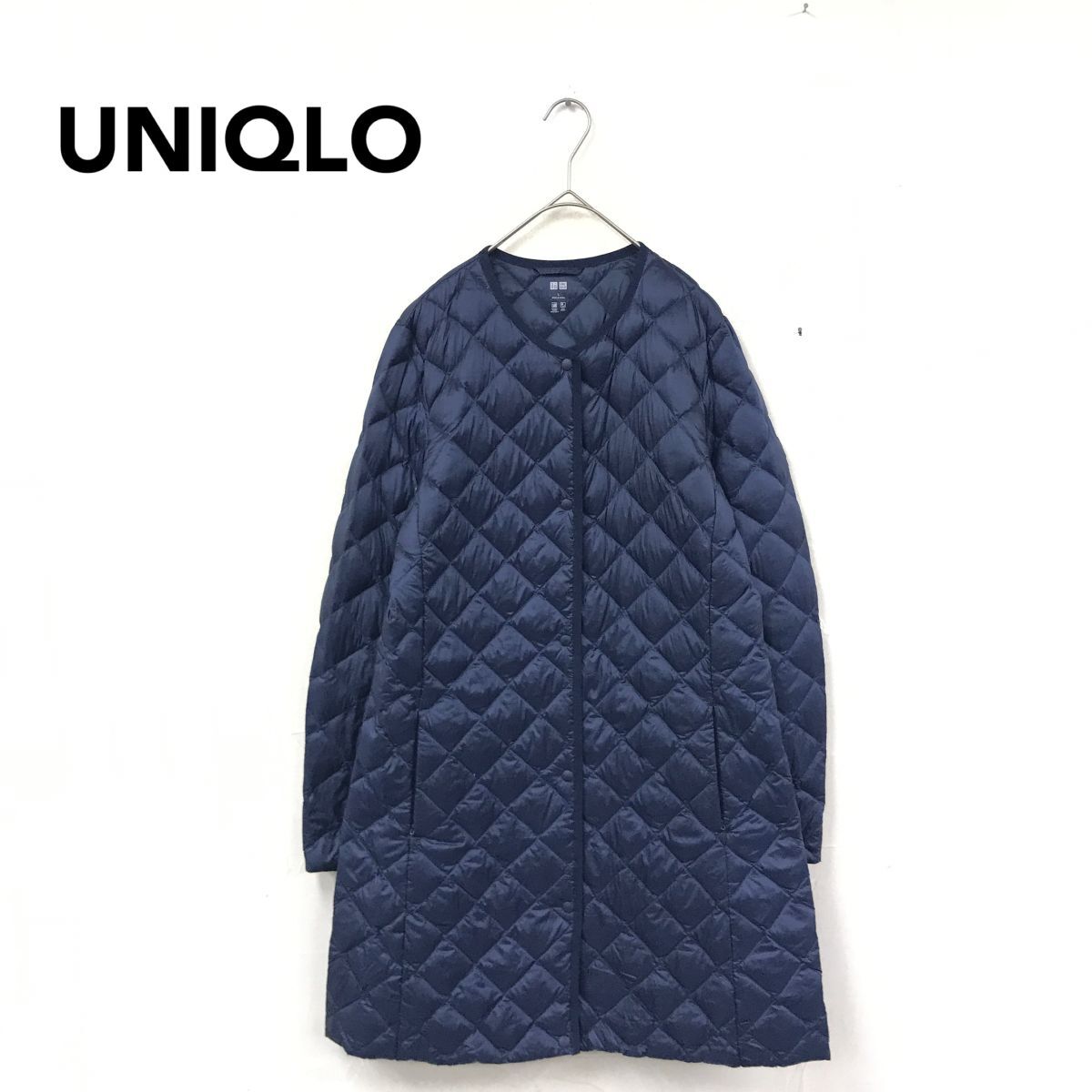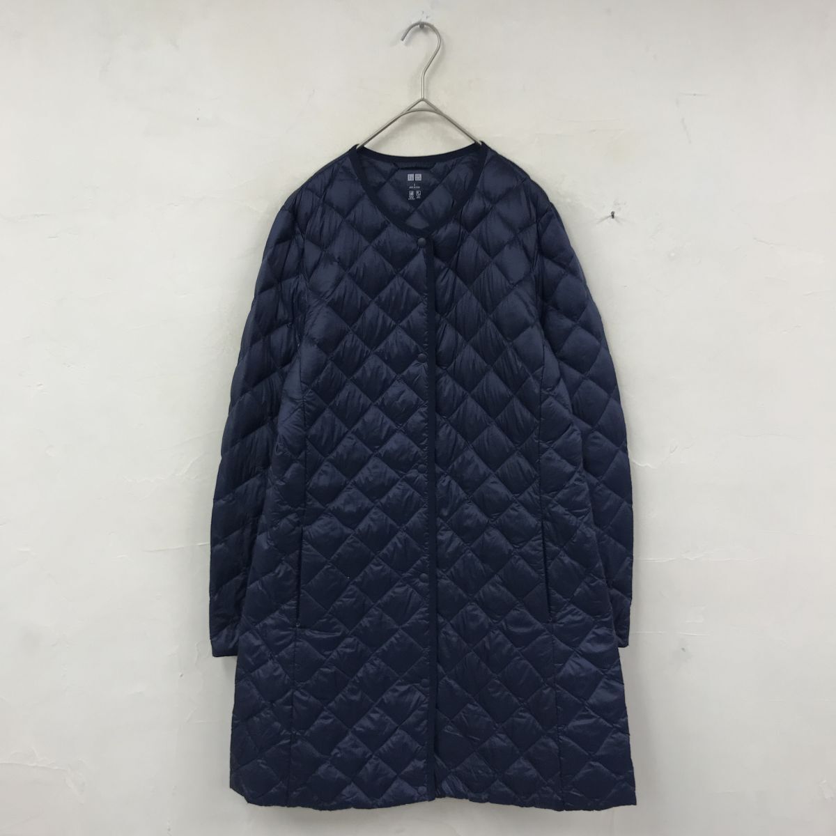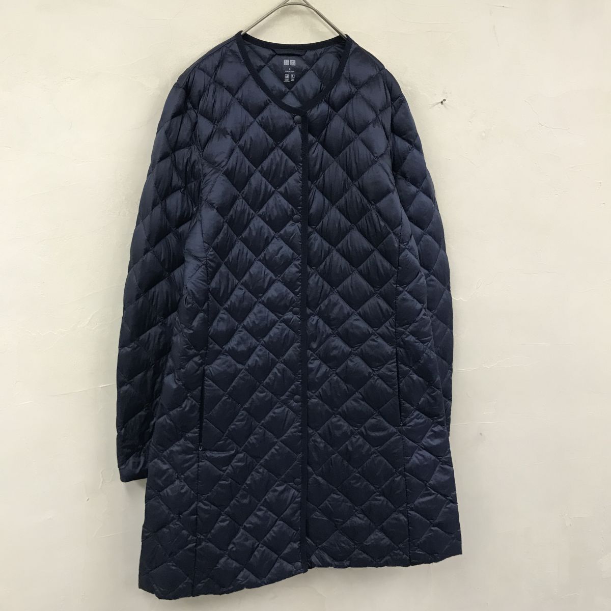 2O-3214-T-N◆UNIQLO ユニクロ ダウンコート 膝上丈 ロングスリーブ スナップボタン◆sizeL ネイビー レディース トップス ナイロン100