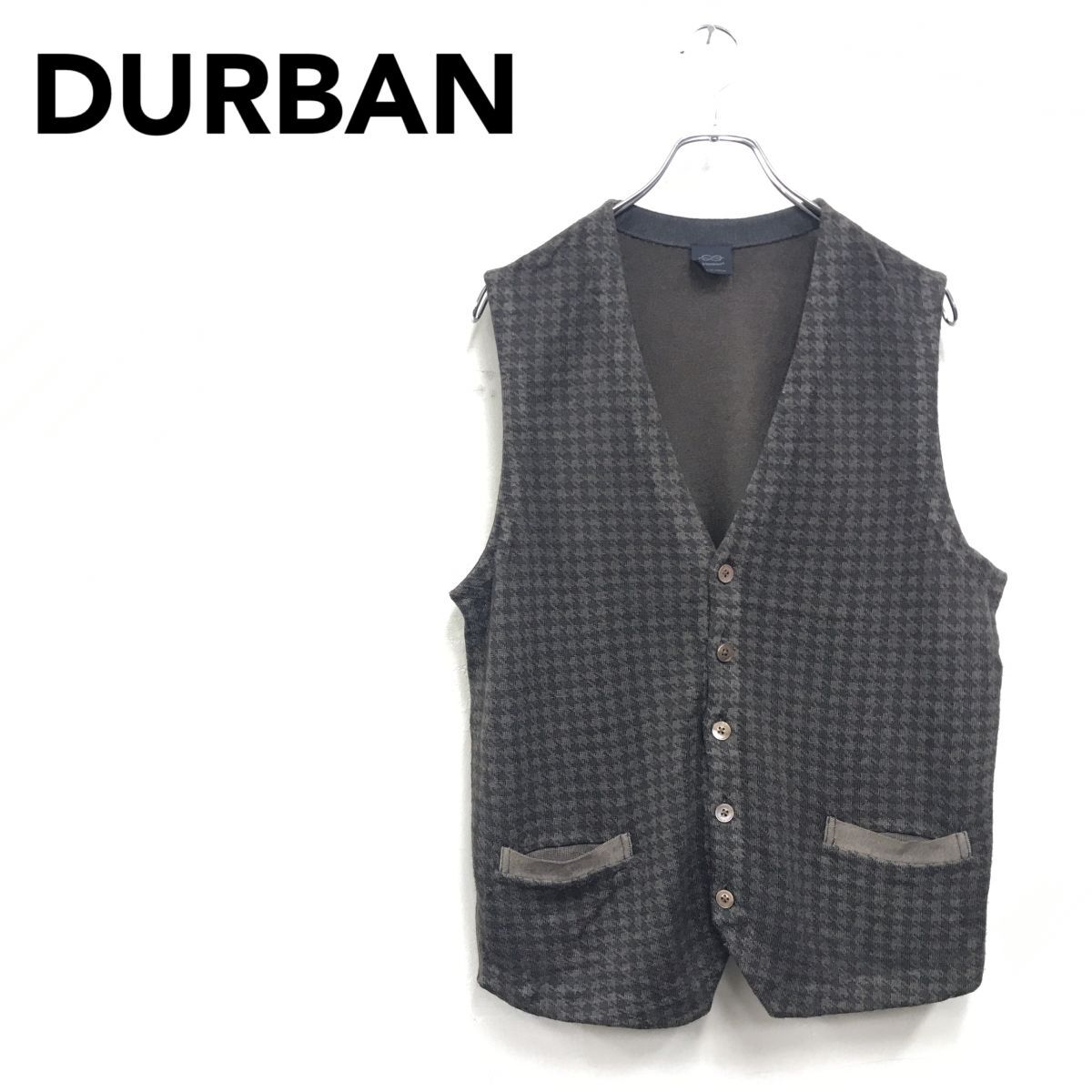 2O3369-R◆日本製 DURBAN ダーバン ニットベスト◆サイズL メンズ 紳士 トップス 千鳥格子柄 秋冬 毛100% ウール ブラウン 茶
