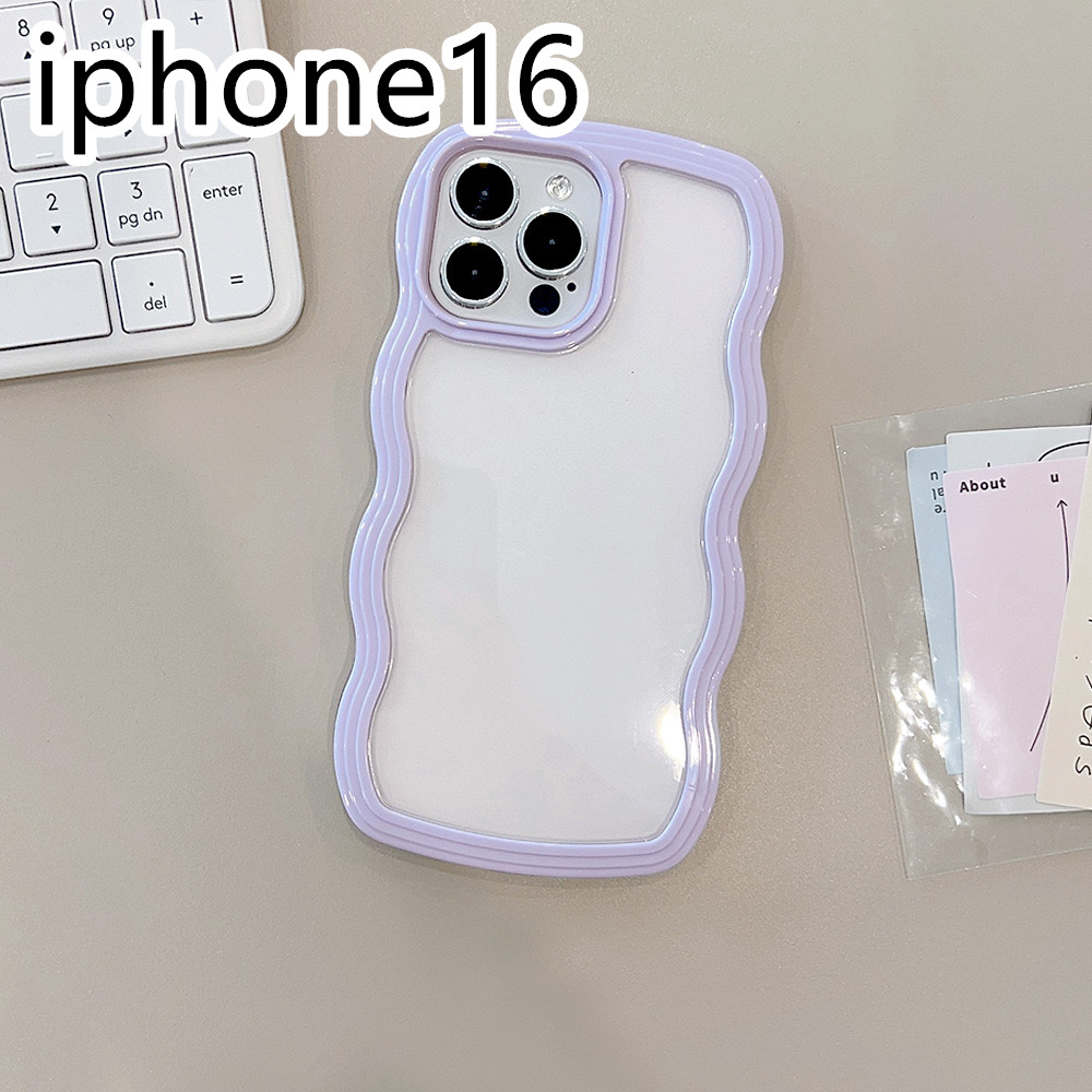 iphone16ケース カーバー TPU 可愛い 波型 お洒落 軽量 ケース 耐衝撃高品質紫