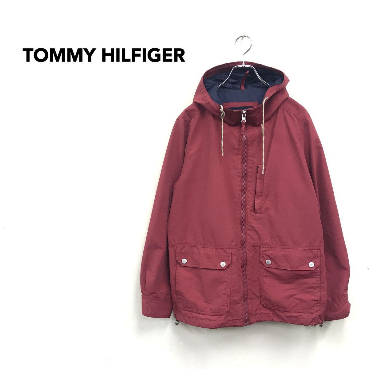 2O3284-G◆ TOMMY HILFIGER トミーヒルフィガー ジップアップ フーデッドジャケット ジャンパー パーカー アウトドア ◆sizeXL 赤 ナイロン