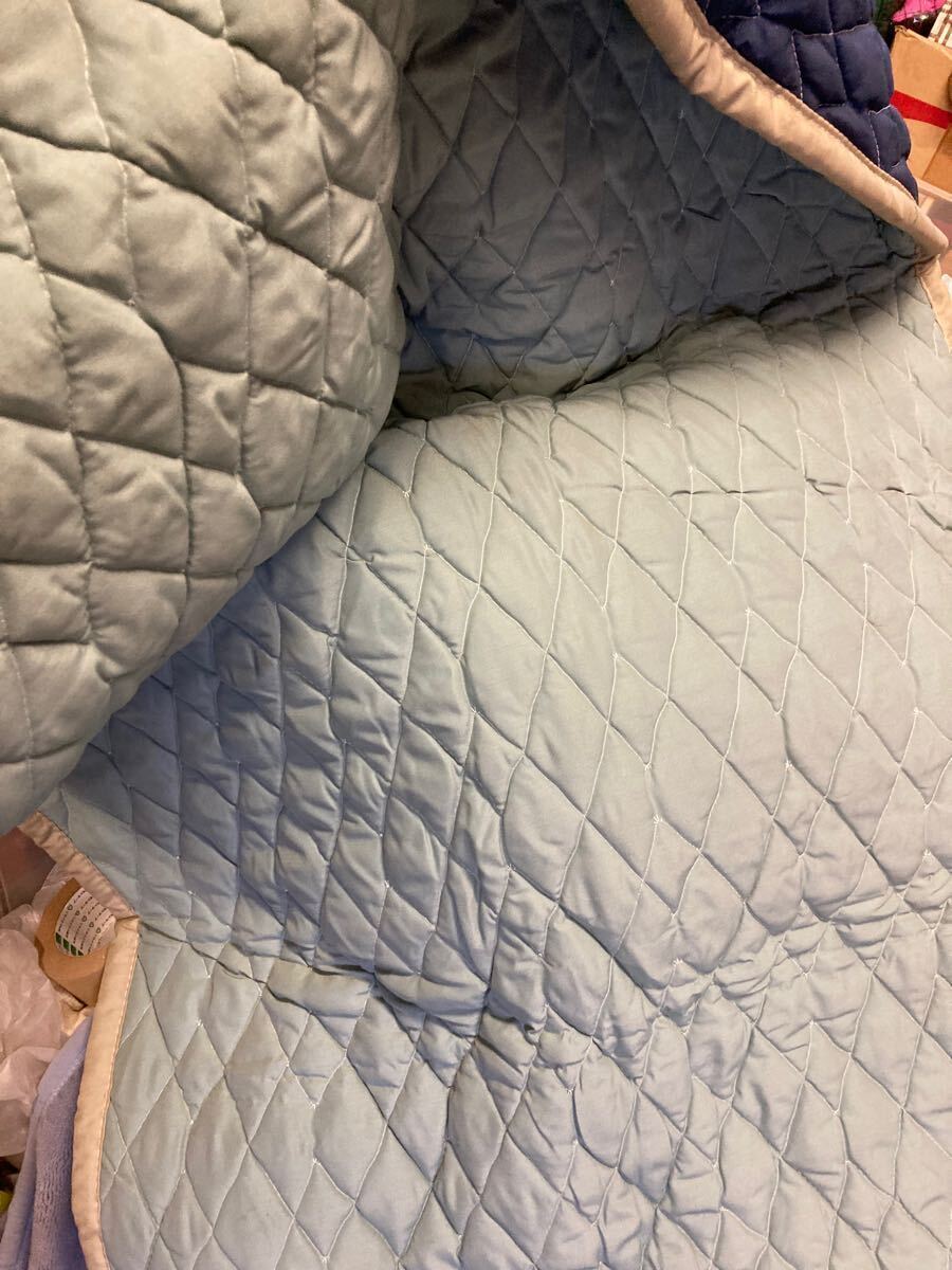【雑貨】 詳細不明 養生 マット 敷物 クッション 当てもの 引越し 傷防止 少し敗れ 前所有者記名有り 手測りで約90×180cm