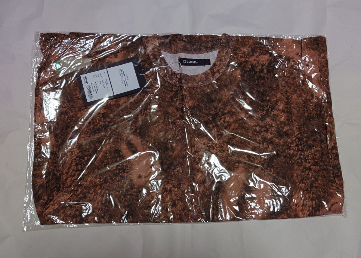 発色の良いオリジナル総柄プリントの天竺を使用したビッグT。襟はバインダー仕様になっており、脇線が少し斜め前に傾斜したパターンになっています。お犬様の軽食が入りそうな小さなポケットが付いています。