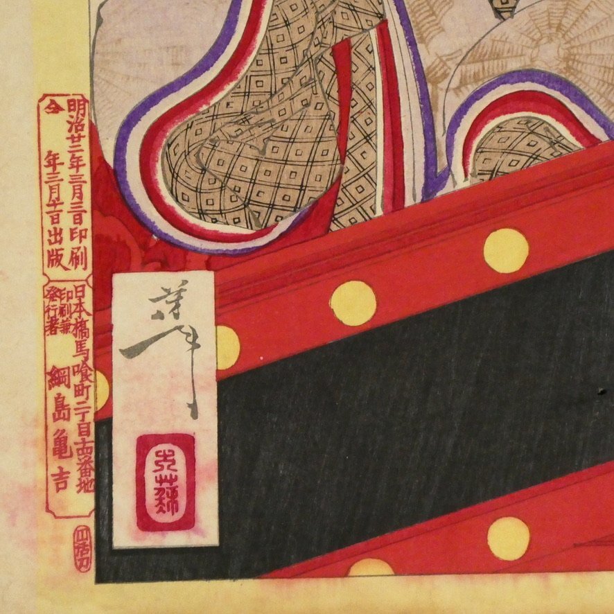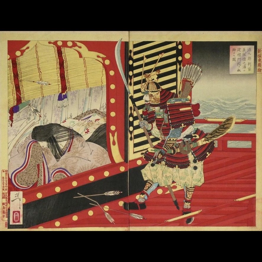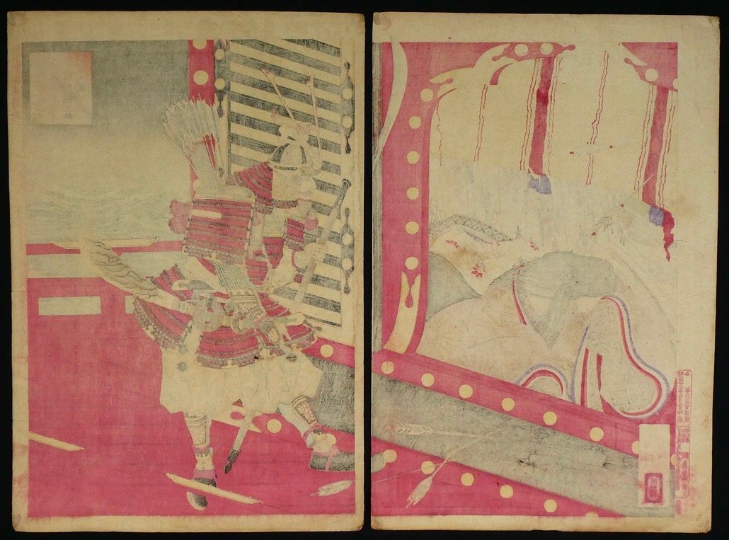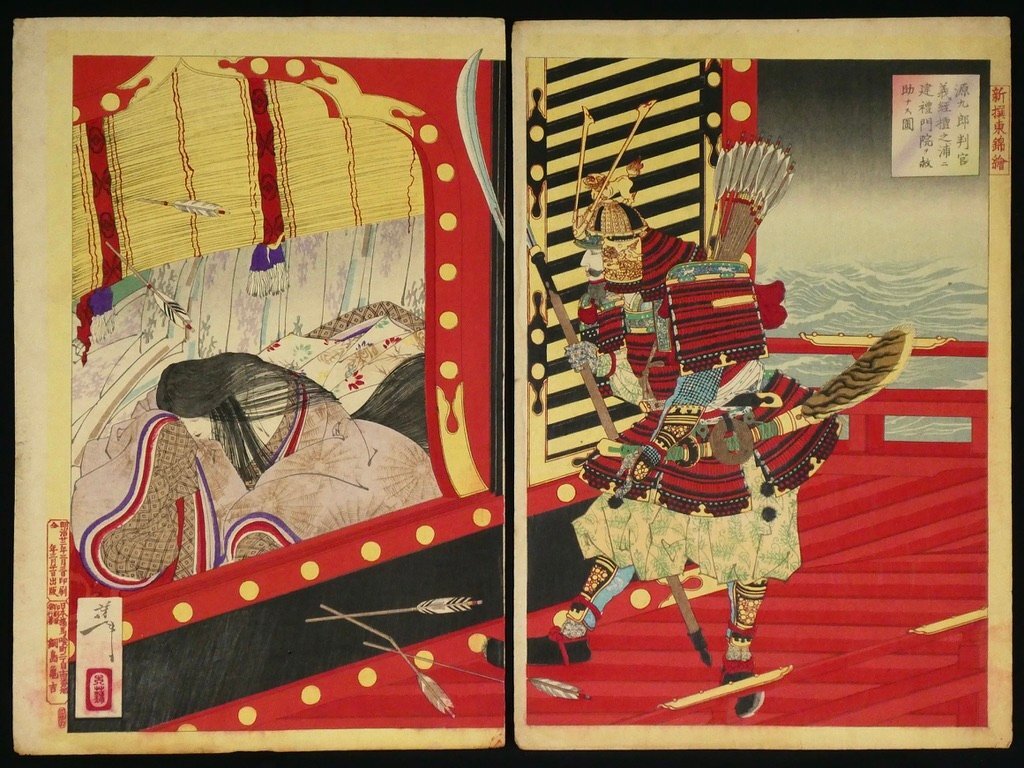 301 月岡芳年 新撰東錦絵 源九郎判官義経壇之浦ニ建礼門院ヲ救助ナス図 二枚続◆源義経◆壇ノ浦の戦い◆武者絵◆版画◆浮世絵◆真作