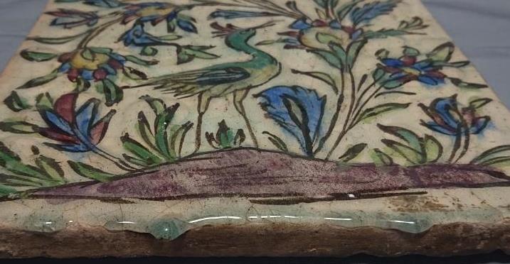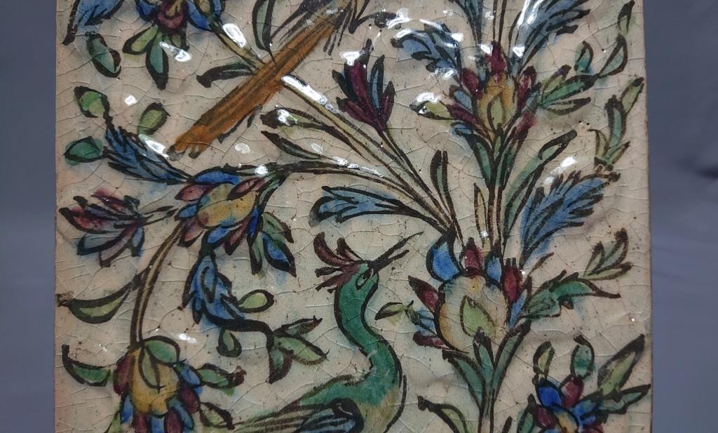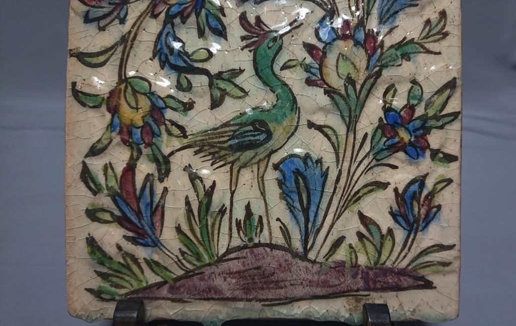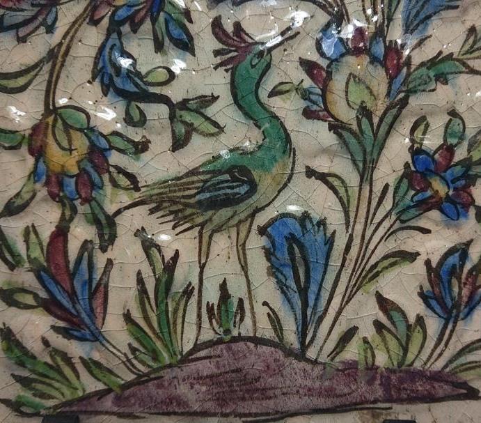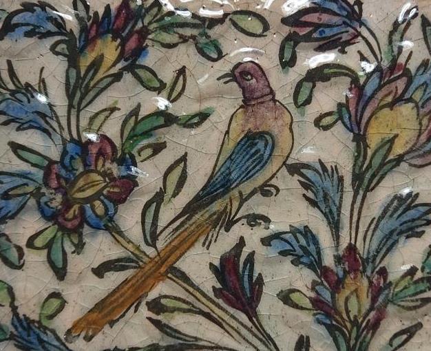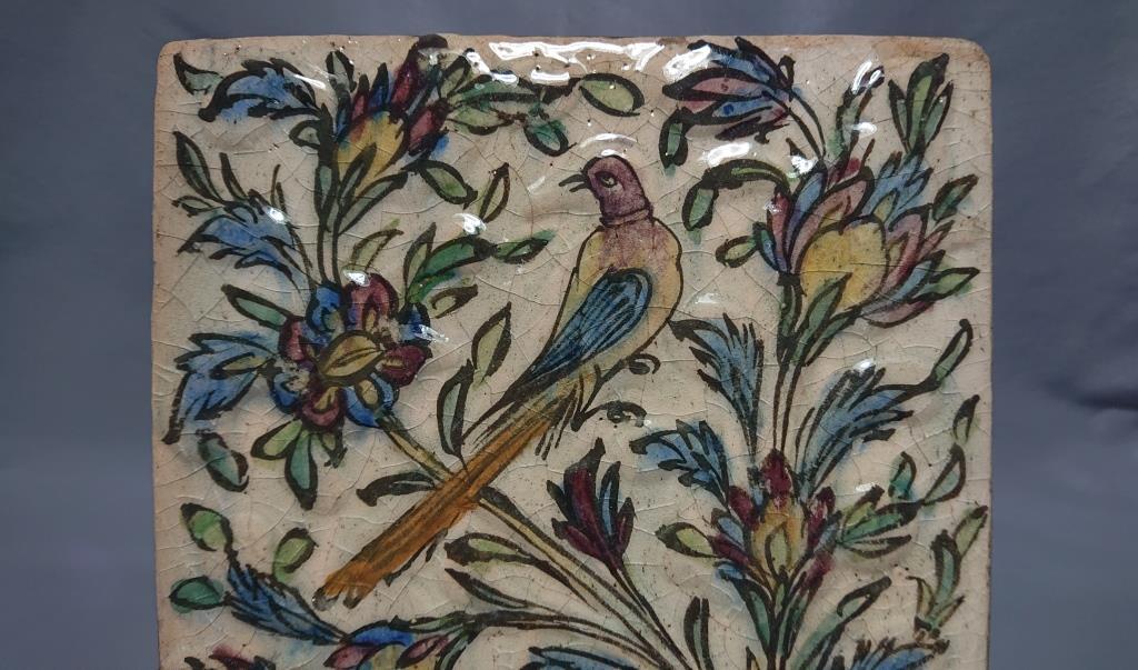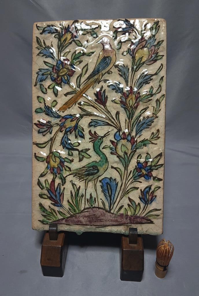 114 コレクター収集品(primitive art) ペルシャ 花鳥紋 タイル 17世紀
