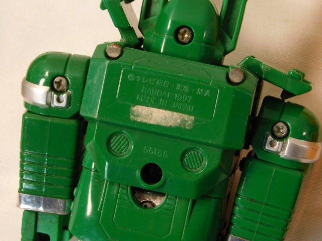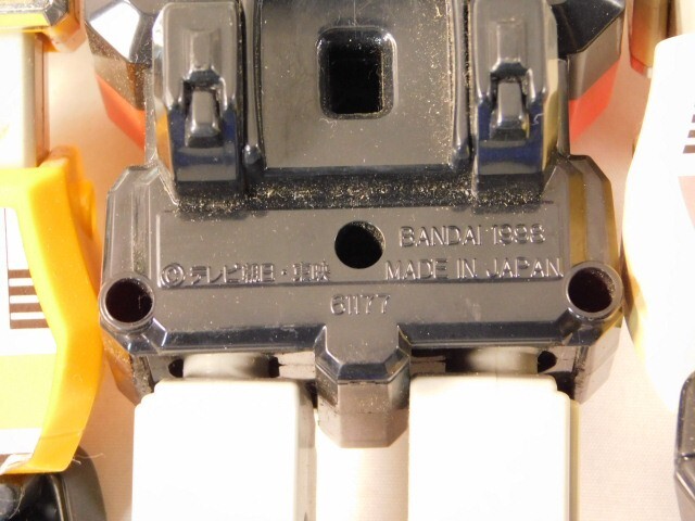 【記載】 ① 大きいロボット…BDNDAI/1998/MADE IN JAPAN/61177/テレビ朝日・東映 ② 緑色のロボット…BDNDAI/1997/MADE IN JAPAN/56165/テレビ朝日・東映・旭通 ③ 紫色の手?…2008/I・T・A・T/B.2032362 ※他の物には記載なし。