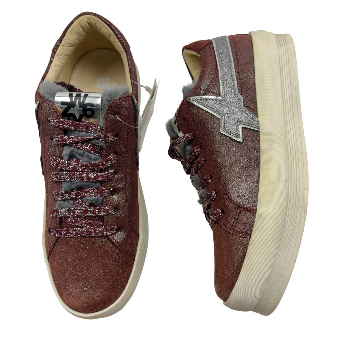 レディース物◆定価27500円◆W6YZ◆ファー付きグリッタースニーカー◆FIRE■ローカット■ウィズ■36|22.5~23.0cm