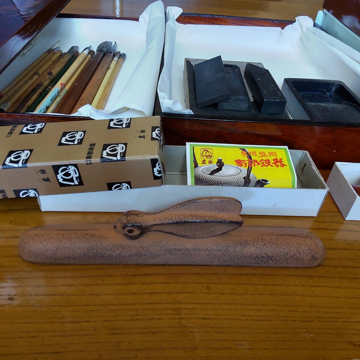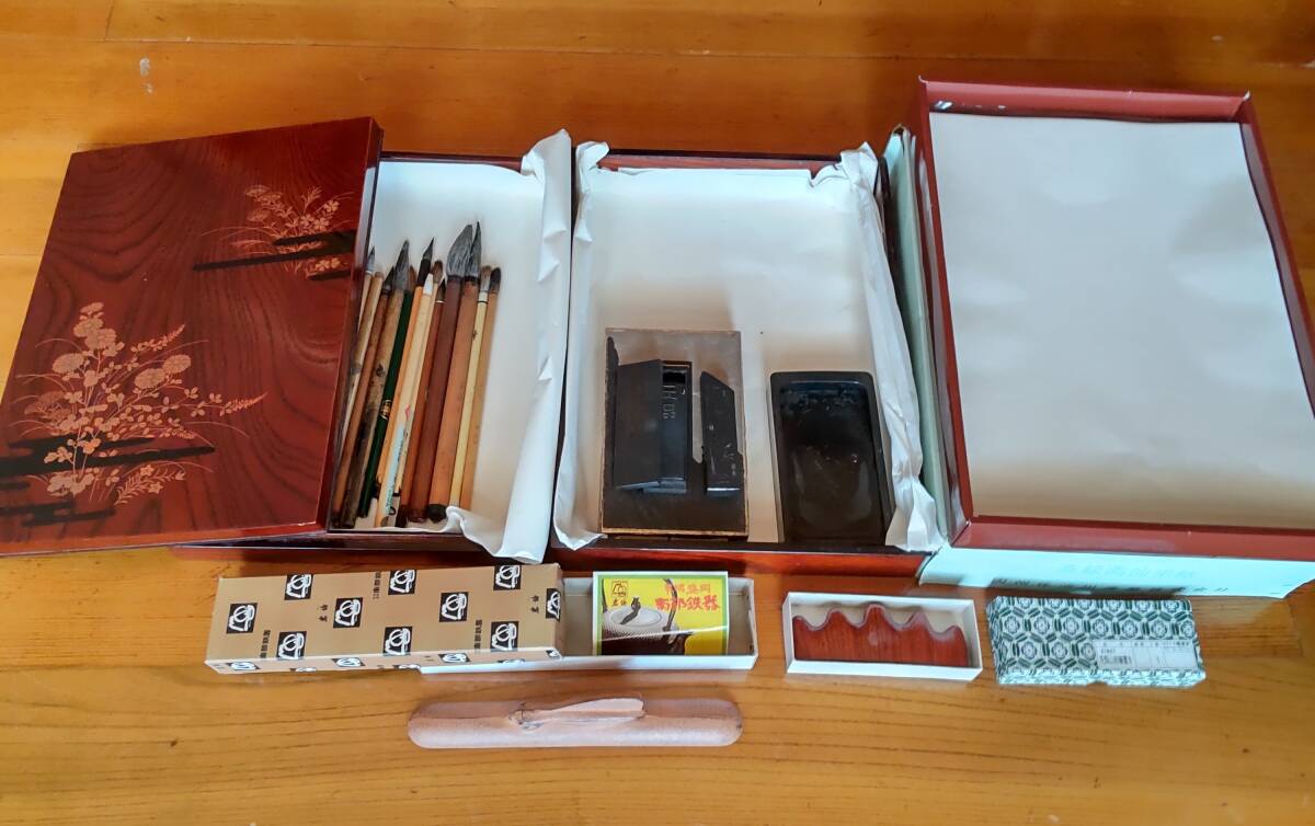 書道具をまとめて 筆・文鎮南部鉄器・墨・すずり・紙・筆置き等の習字道具セット