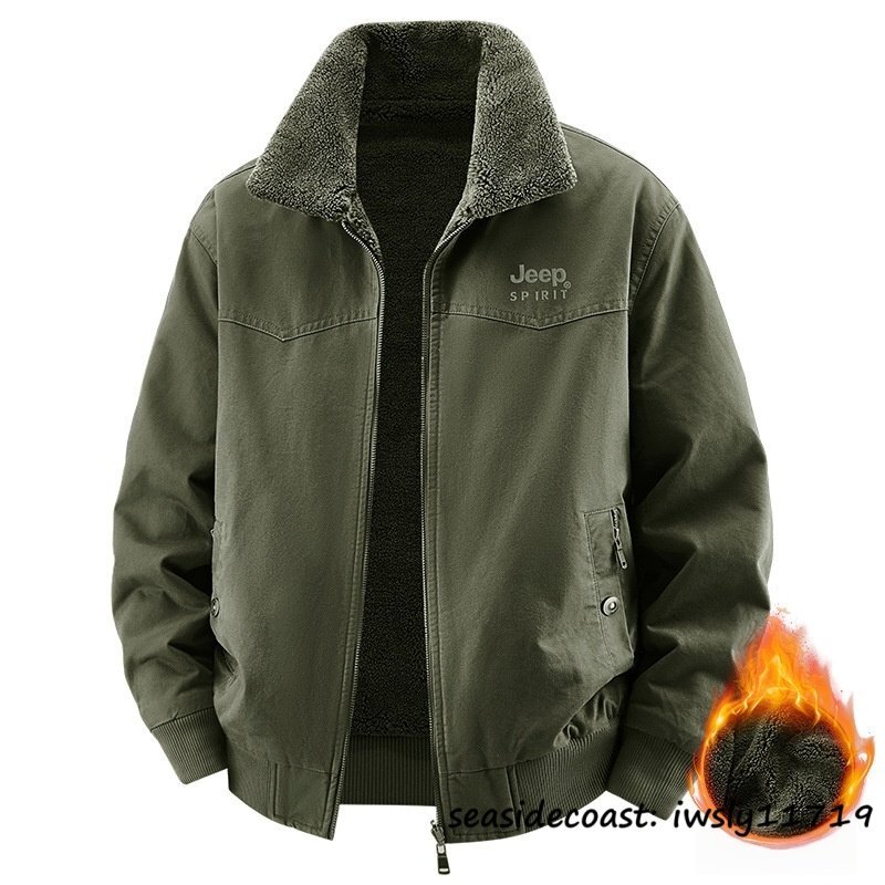 新作*ジャケット 秋冬 ブルゾン 裏フリース 防寒 厚手 防風 暖かい ムートンコート両面着 リバーシブル 作業着 ジャンパー オリーブ M