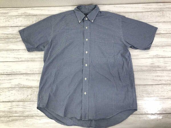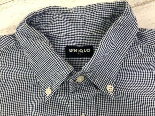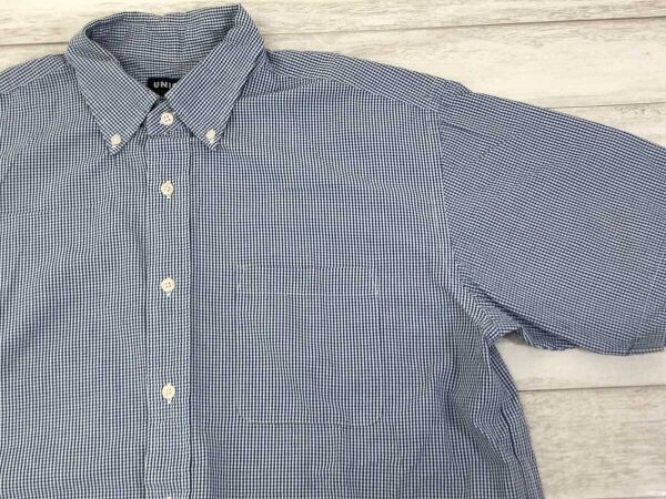 旧タグ オールド ユニクロ OLD UNIQLO レトロ オーセンティック ギンガムチェック 半袖 ボタンダウン シャツ メンズ XL 青白 です。