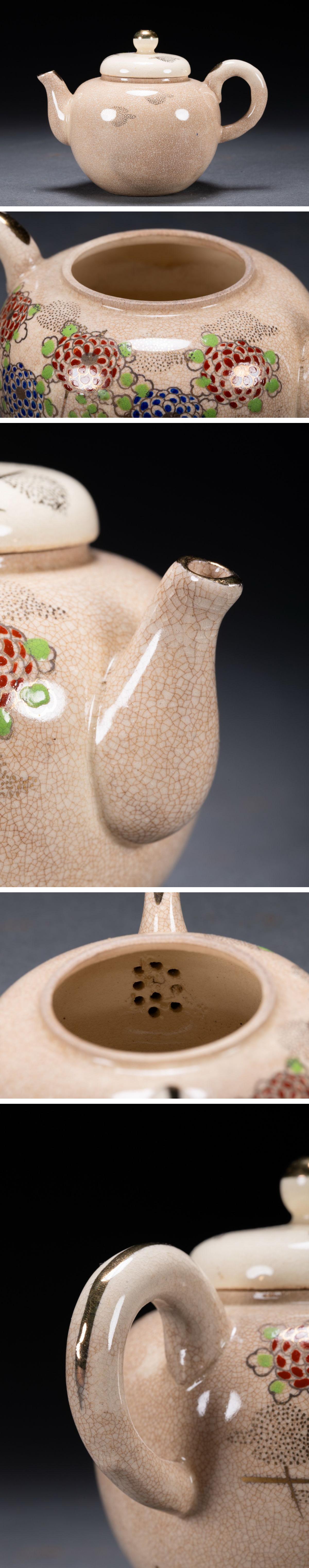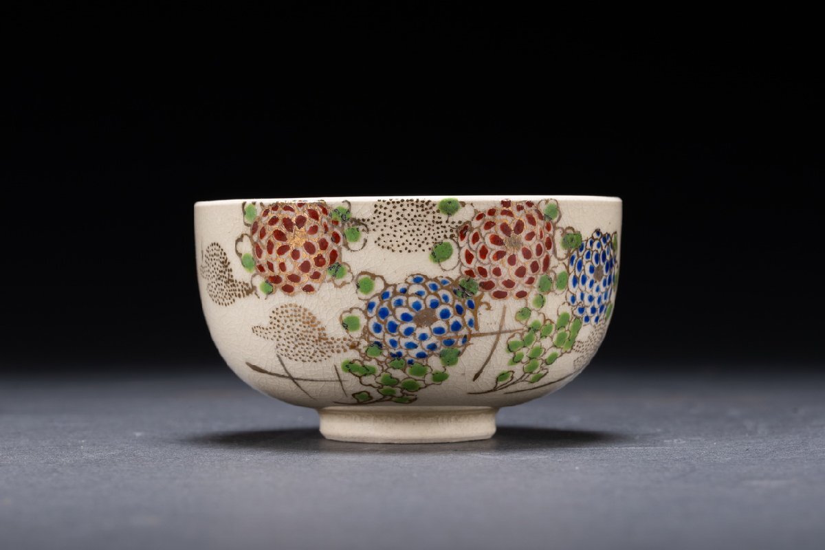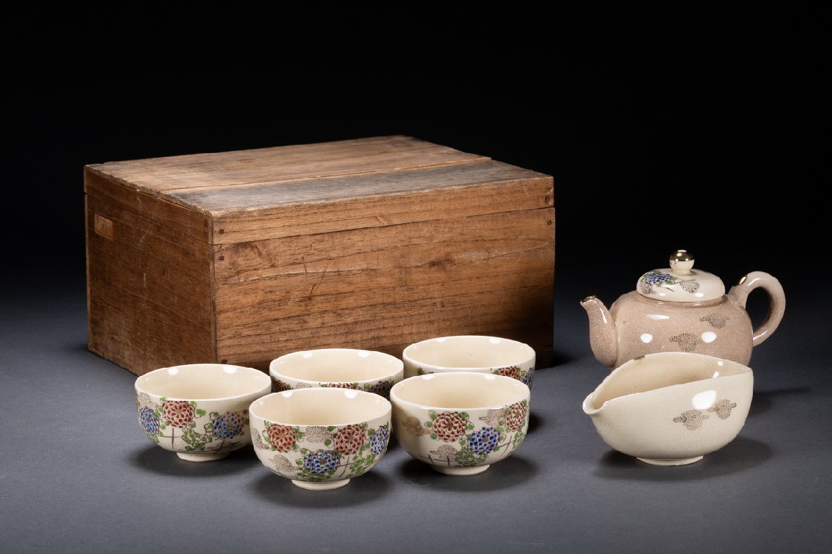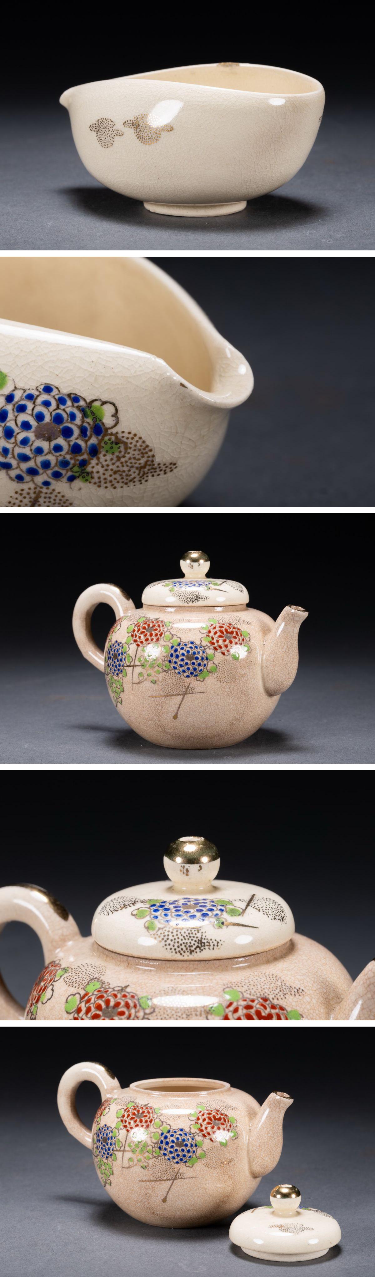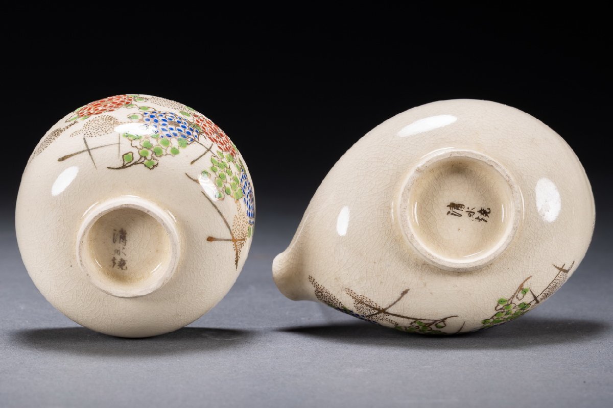 【雲錦】清水焼 在銘 色絵 花卉図茶器揃い 茶道具 直入識箱 真作保証 美術品 7L10-132S05