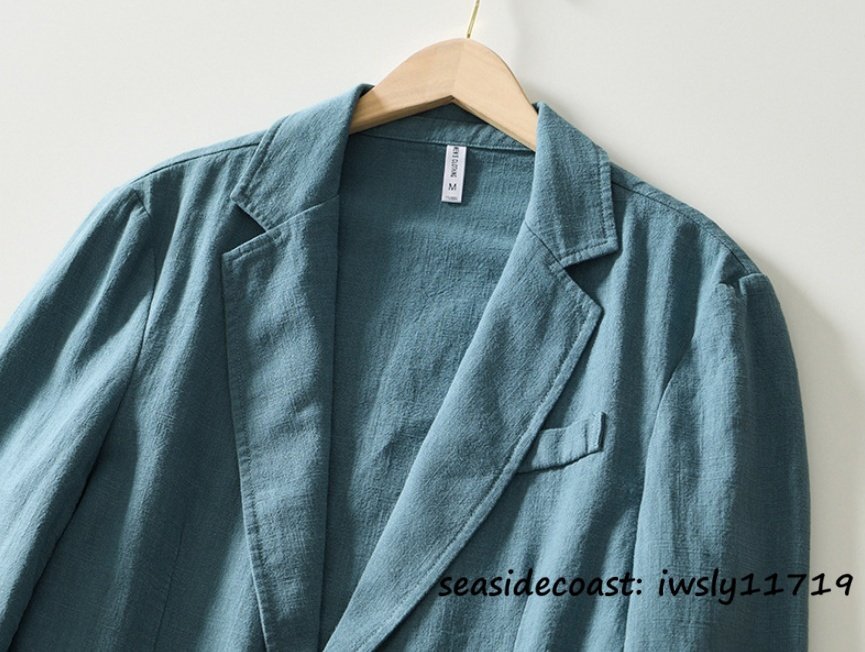 超希少*テーラードジャケット メンズ 春夏秋 リネンジャケット 麻100% 無地 清涼感 通気性 ブレザー 麻スーツ 紳士服 鮮やか ブルー 2XL