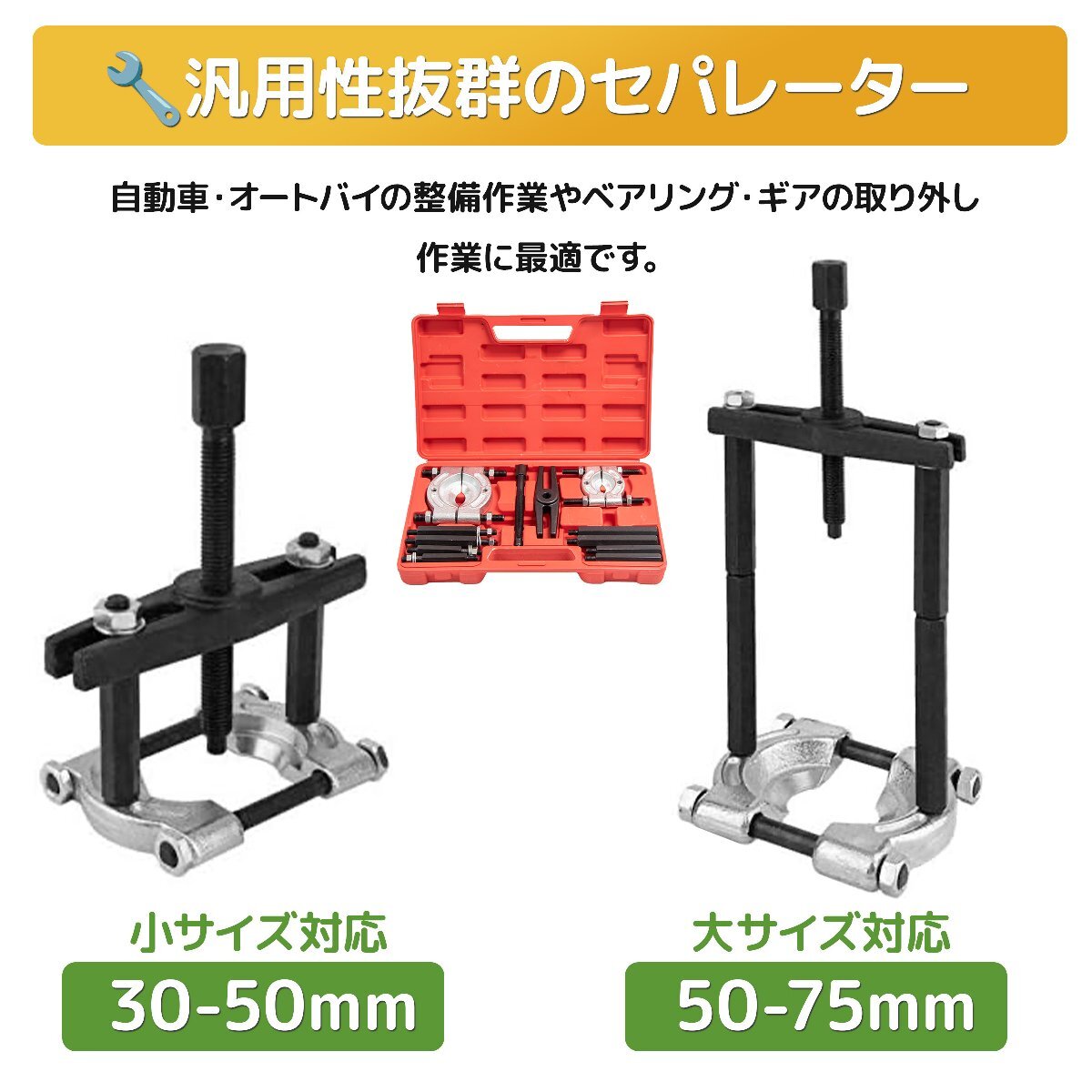 【送料無料】ベアリングプーラー セパレーターセット 30~75mm対応 ギアプーラー プーリープーラー 抜き取り工具 ベアリング外し ギヤ外し