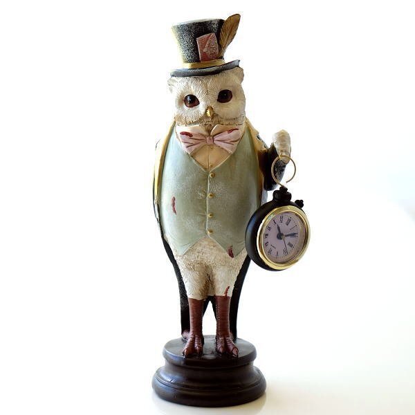 | バロックなオウルの オブジェ風スタンドクロックです 淡い色のチョッキと シックなジャケット お揃いのハットと ピンクの蝶ネクタイを合わせた お洒落なオウルの執事さん 手にはしっかりと時計を持って 時間の管理はお任せあれ アンティーク風なペイントで 置物としてもとってもオシャレです ※時計は電池式でリューズは飾りです 商品名 : ジェントルオウルクロック 商品番号 : cov6572 全体のサイズ(cm) : 幅13×奥行9×高さ29.5 時計の文字盤のサイズ : 直径約4 材質 : 樹脂 他 重量 : 550g 生産国 : 中国 ※お試しボタン電池1個付(LR44) ※塗装の色ムラや表情の違い、小傷等ございます。手作り品の特性として予めご了承下さい |