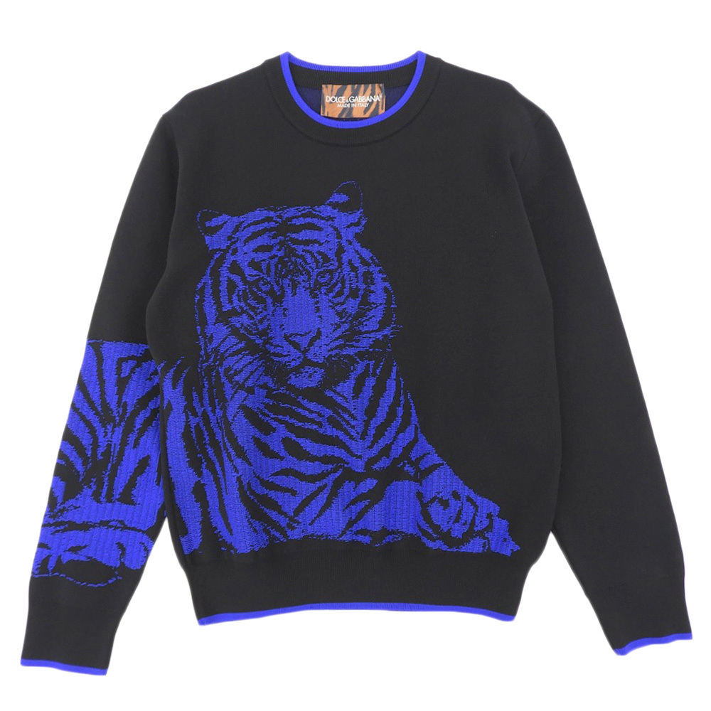 美品 DOLCE&GABBANA ドルチェアンドガッバーナ ナイロン×ヴァージンウール タイガーモチーフ ロングスリーブニット M IB79KM JDML3