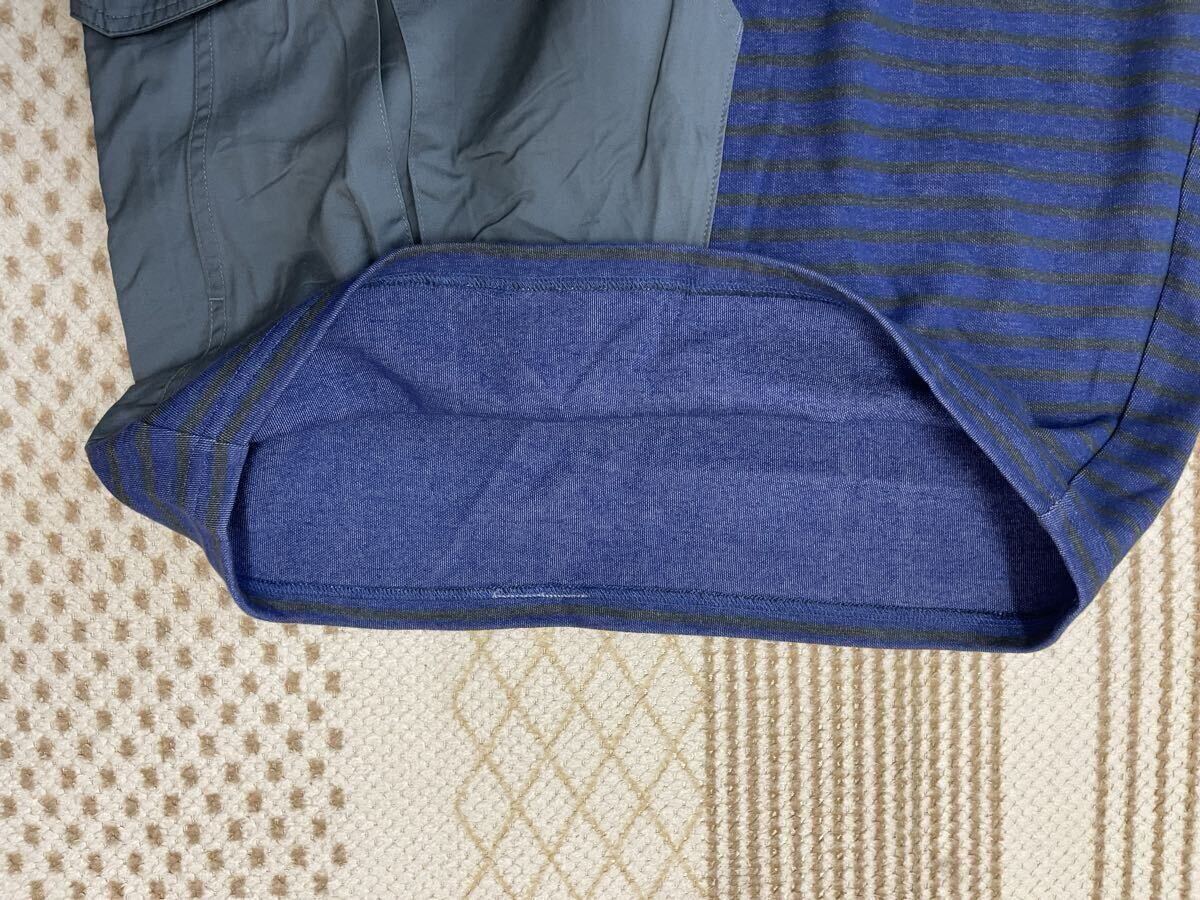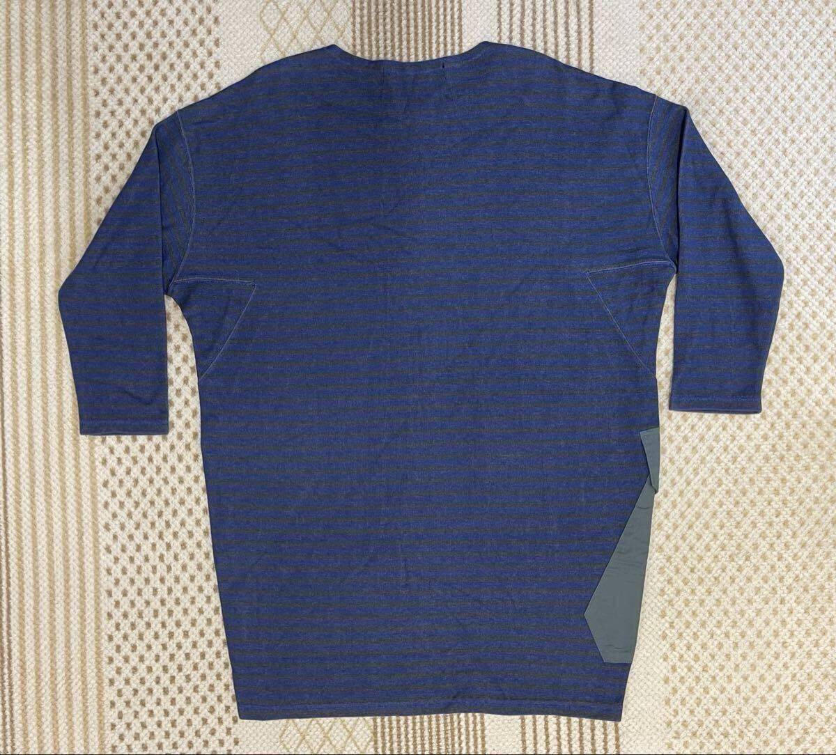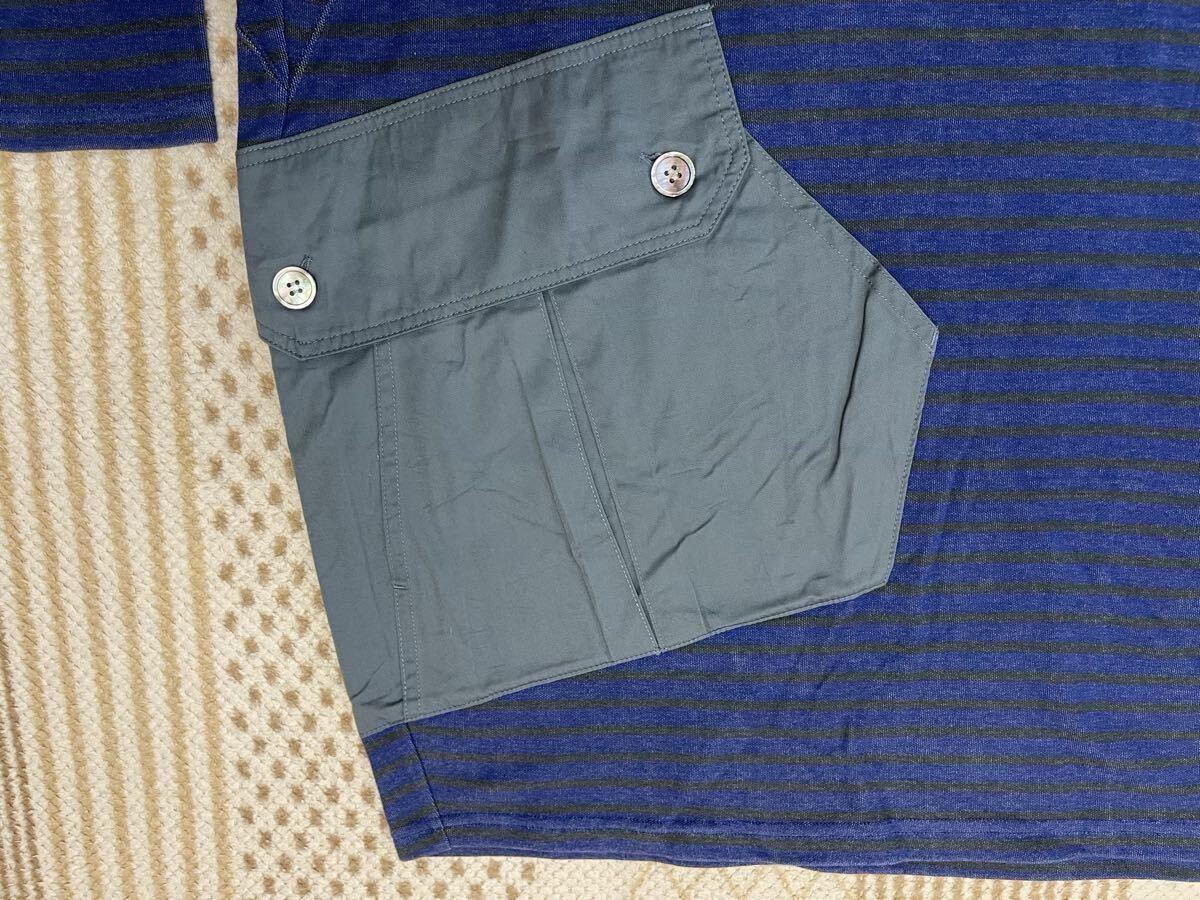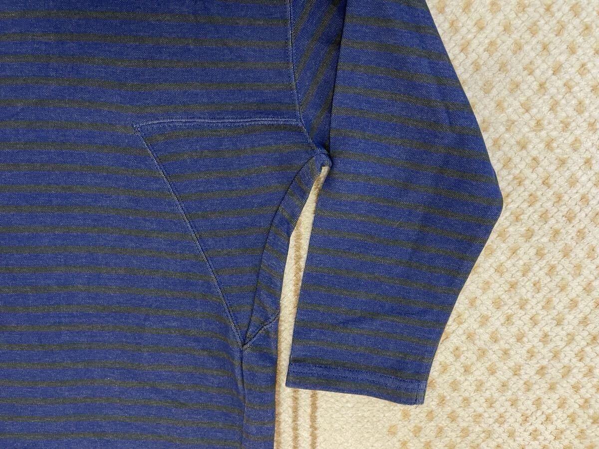 ゆったりとした身幅とドロップショルダーのリラックスシルエットは体型を選ばず、綿ポリブレンドの肌触りの良いカットソー素材で着心地も快適。一枚でサマになるチュニック丈は、細身のパンツやレギンスと相性抜群です。落ち着いたネイビーとグレーのボーダー柄で、大人のリラックススタイルに上品に馴染みます。