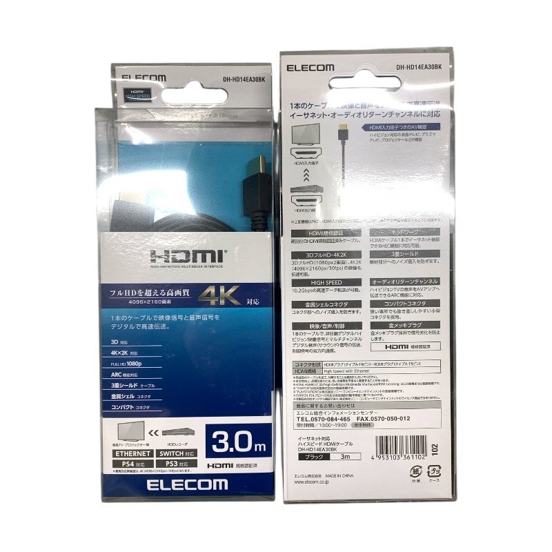 | 4953103361102 | ELECOM | HDMIケーブル(3m)DH-HD14EA30BK | 11 | 特になし | |
